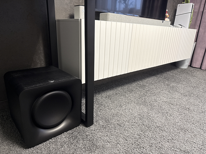 Лаконичный и лаконичный дизайн корпуса Flexus Sub 100 из черного МДФ позволяет ему идеально вписаться в интерьер практически любого помещения.