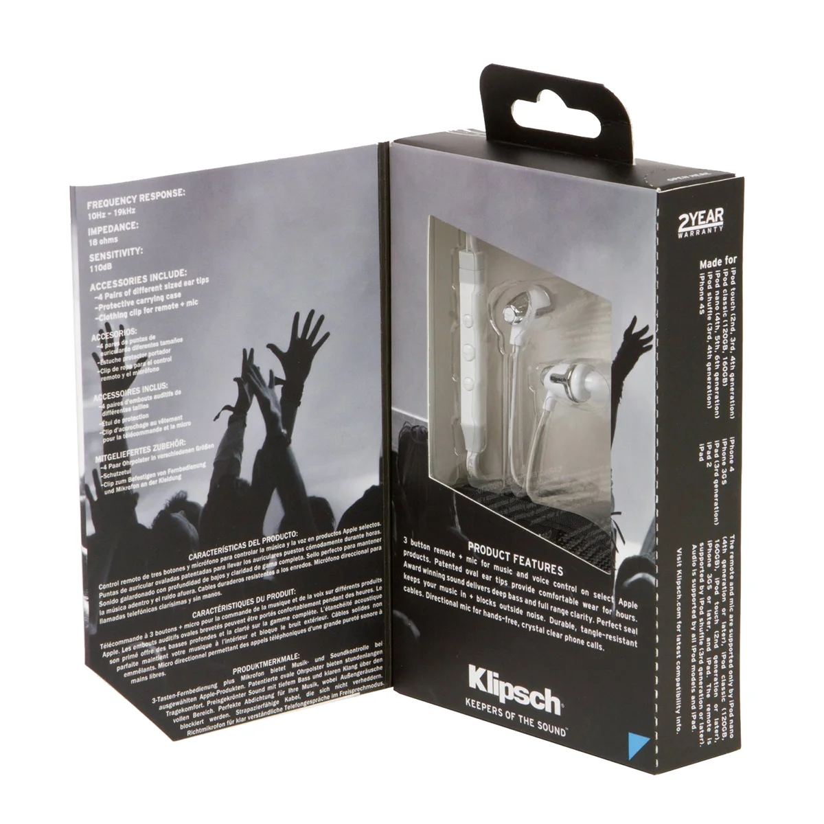 Image S4i (II) - это обновленная версия внутриканальной гарнитуры для iPod, iPhone и iPad от американской компании Klipsch. Модель Image S4i (II) оснащена качественным микрофоном и трехкнопочным пультом ДУ, который позволит Вам принимать и завершать входящие вызовы, регулировать громкость и управлять воспроизведением треков. Наушники Klipsch используют запатентованные овальные амбушюры, обеспечивающие непревзойденный комфорт, надежную фиксацию и отличную шумоизоляцию. Что касается кабеля - у обновленной модели он плоской, а значит, Вы можете навсегда забыть о проблеме спутанных проводов. Image S4i (II) имеют мощное и живое звучание на уровне гораздо более дорогих моделей. Более 60 лет опыта в производстве аудиосистем и эксклюзивные 8,5-мм драйверы Klipsch позволят Вам прочувствовать все краски звука: от захватывающих дух басов до волнующих высоких частот.