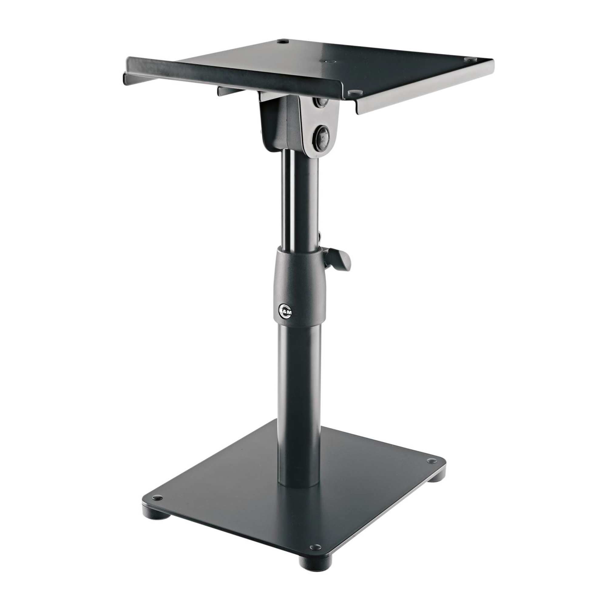 Регулируемая по высоте стойка-стол с возможностью наклона. Прочная металлическая конструкция с большой опорной пластиной (230 x 250 мм) подходит для широкого спектра мониторов и другого оборудования того же размера.