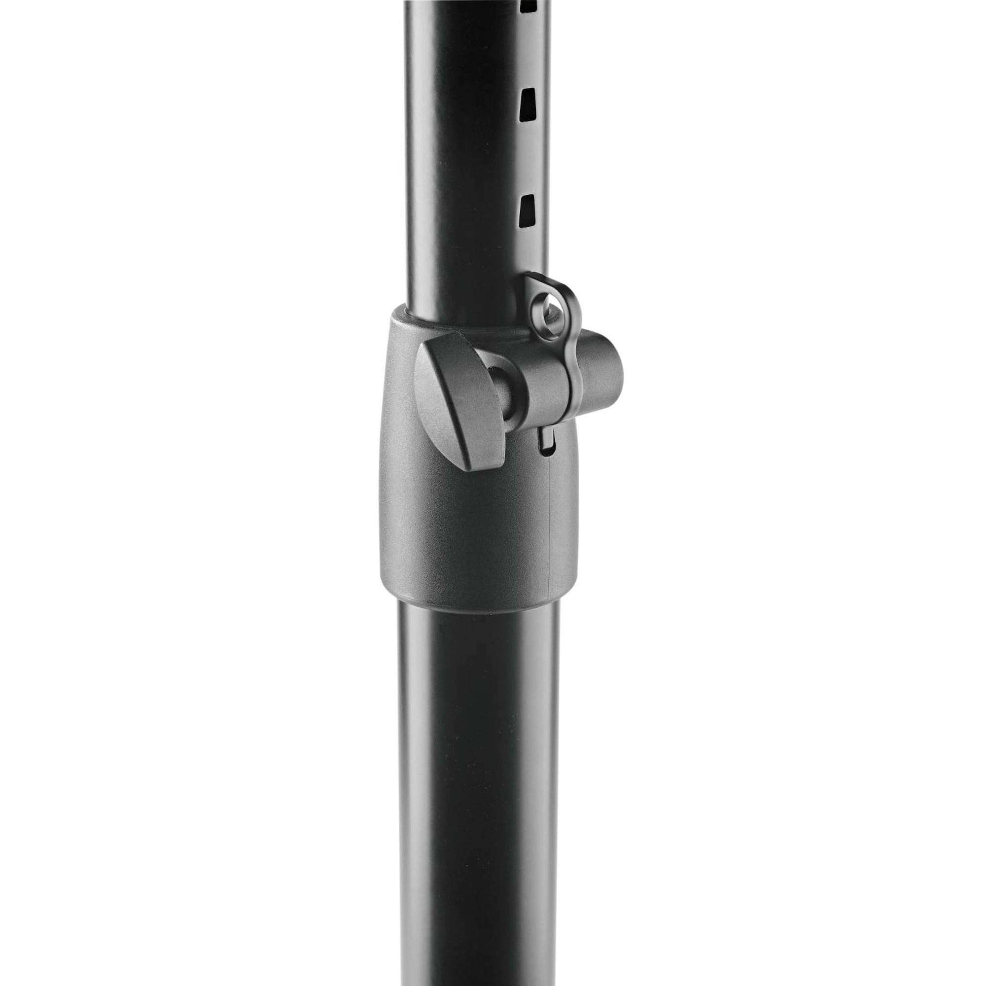 Четыре покрытые войлоком подкладки обеспечивают развязку под опорной пластиной. Индивидуальную высоту можно регулировать в 4 шага от 350 до 450 мм. Что касается грузоподъемности, стойка может быть загружена по центру до 25 кг. В комплект входят резиновые прокладки для надежной и шумоизолирующей поддержки мониторов.
