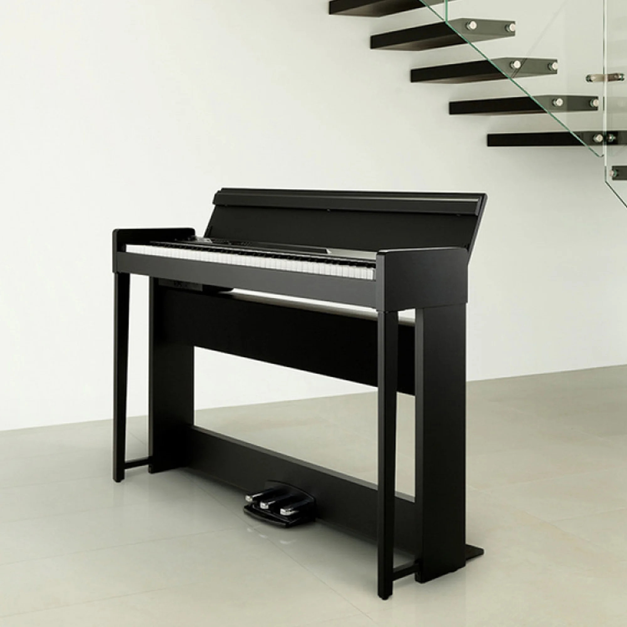 По дизайну C1 AIR ближе к аккуратной мебели, чем к технике. Тонкий корпус без лишних выступов, строгие линии и аккуратная панель управления не спорят с интерьером и не утяжеляют комнату. Есть несколько вариантов отделки: черный, белый, коричневый и темный, так что инструмент можно подобрать под почти любой стиль. Тройная педаль встроена в стойку и не уезжает по полу, а корпус собран так, чтобы выдерживать ежедневные занятия и при этом выглядеть аккуратно и минималистично.