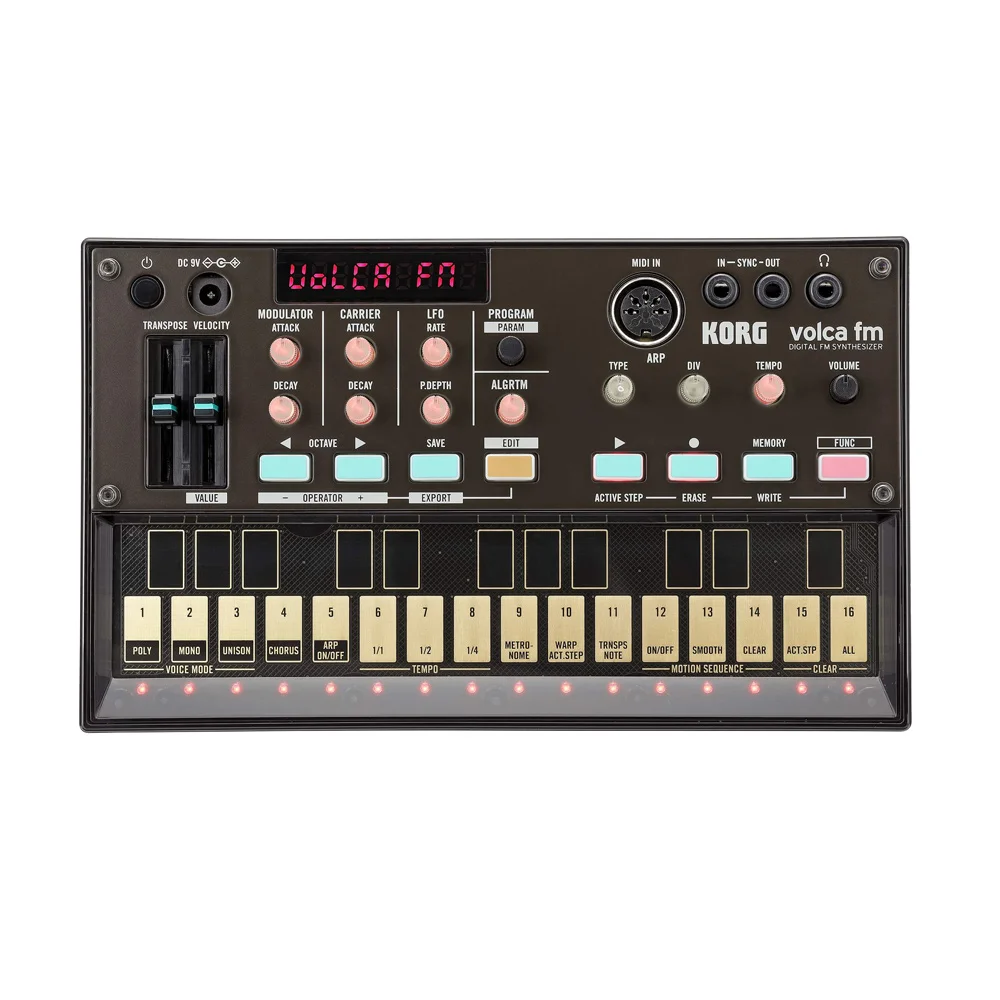 Korg Volca FM – это портативный цифровой синтезатор, использующий популярную в 80-х годах технологию FM-синтеза. Прибор представлен в корпусе из прочного пластика и сделан по подобию легендарного инструмента Yamaha DX7, на котором записана большая часть поп-музыки тех лет, и схож с ним не только по звучанию, но и аппаратно. Для формирования звука здесь, как и в DX7, используются 6 операторов, которые в различных комбинациях между собой образуют 32 программы с возможностью полного редактирования. В комплектацию входят два буклета, объясняющие процесс формирования всех патчей и облегчающие настройку.