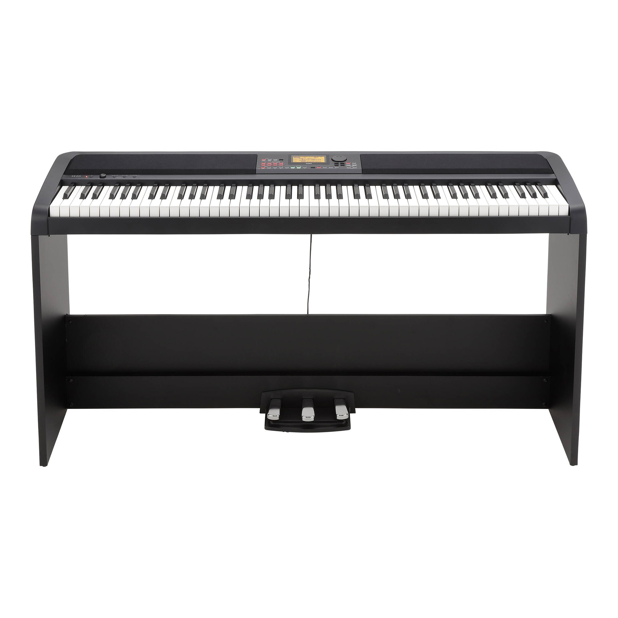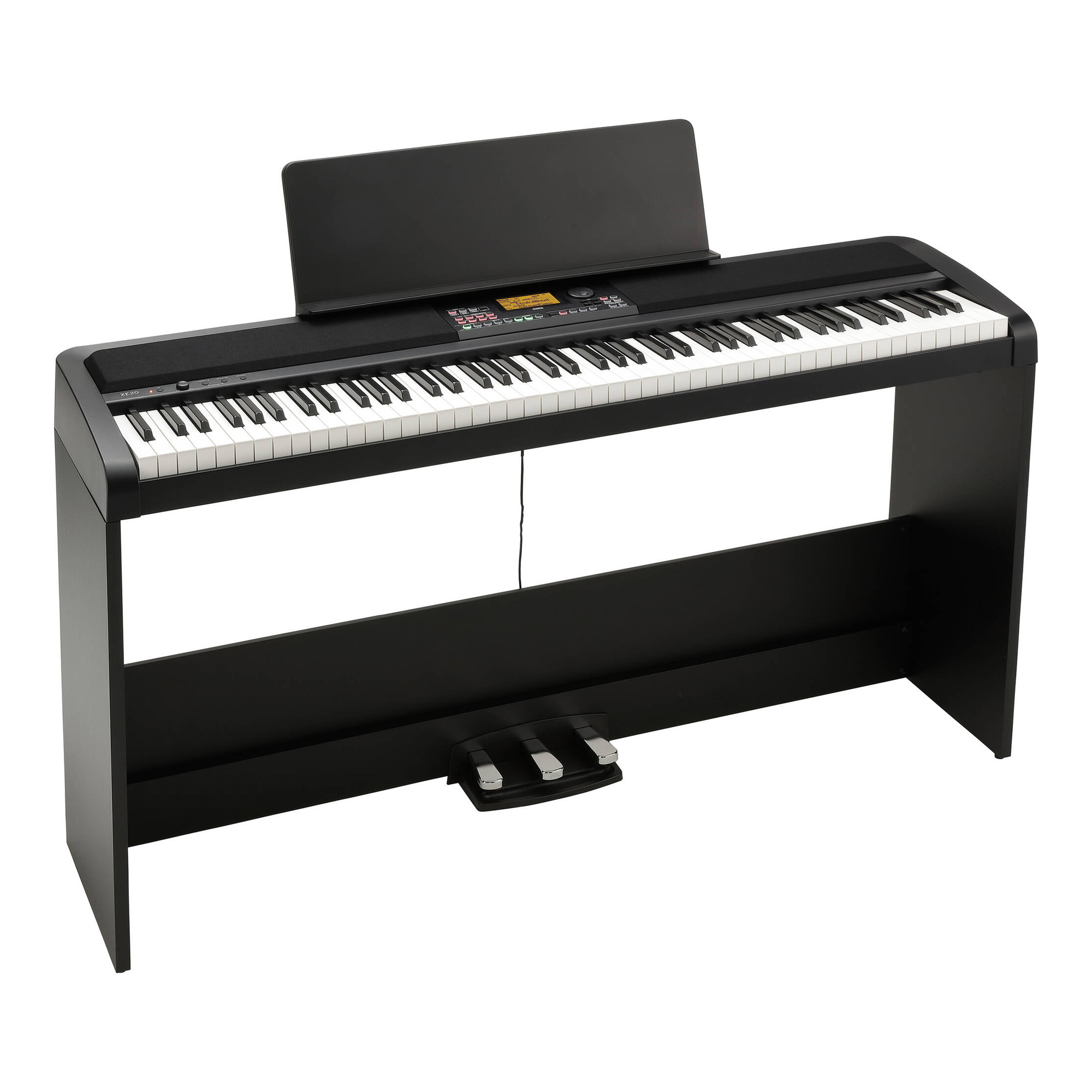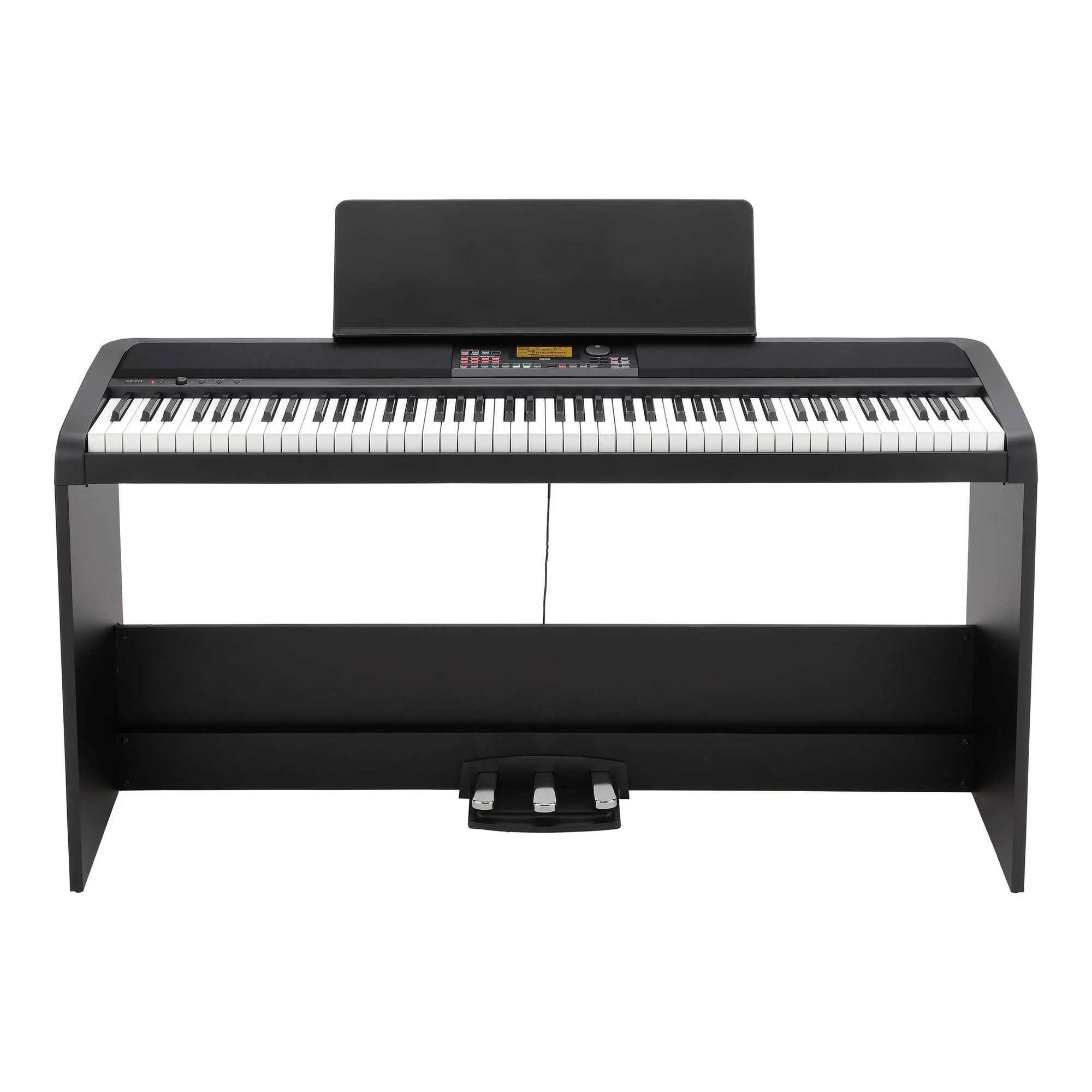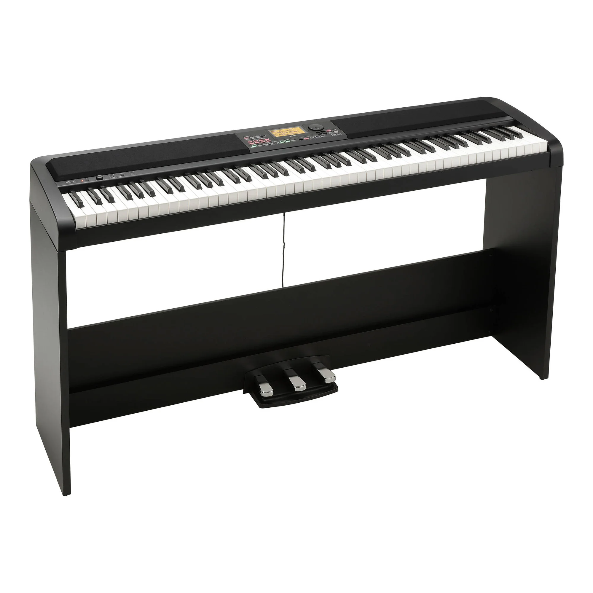 Korg XE20SP является цифровым фортепиано со стойкой и блоком из 3 педалей, на котором можно как эффективно учиться играть, так и не менее продуктивно заниматься, сочинять новую музыку и исполнять любые композиции для клавишных. Модель имеет достаточно скромный и строгий дизайн, за счет чего прекрасно впишется в любой дизайн. Комплектация включает в себя адаптер питания и пюпитр. Отдельно можно приобрести педаль демпфера DS-1H, ножные переключатели EXP-2, PS-1 или PS-3, а также скамейку для пианиста PC-300 или PC-110.