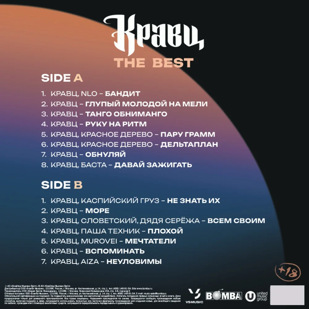 Виниловое издание собрало на одной пластинке песни, благодаря которым музыкант окончательно закрепил статус одного из самых мелодичных и атмосферных представителей русскоязычного хип-хопа. Музыка Кравца это уникальный микс лирики, лёгкого грува, ироничных текстов и душевного настроения, который легко узнаётся с первых секунд. Кравц начал писать музыку ещё в подростковом возрасте, а его дебютный альбом вышел в 2009 году, положив начало долгой и успешной карьере в жанре рэпа и хип-хопа.