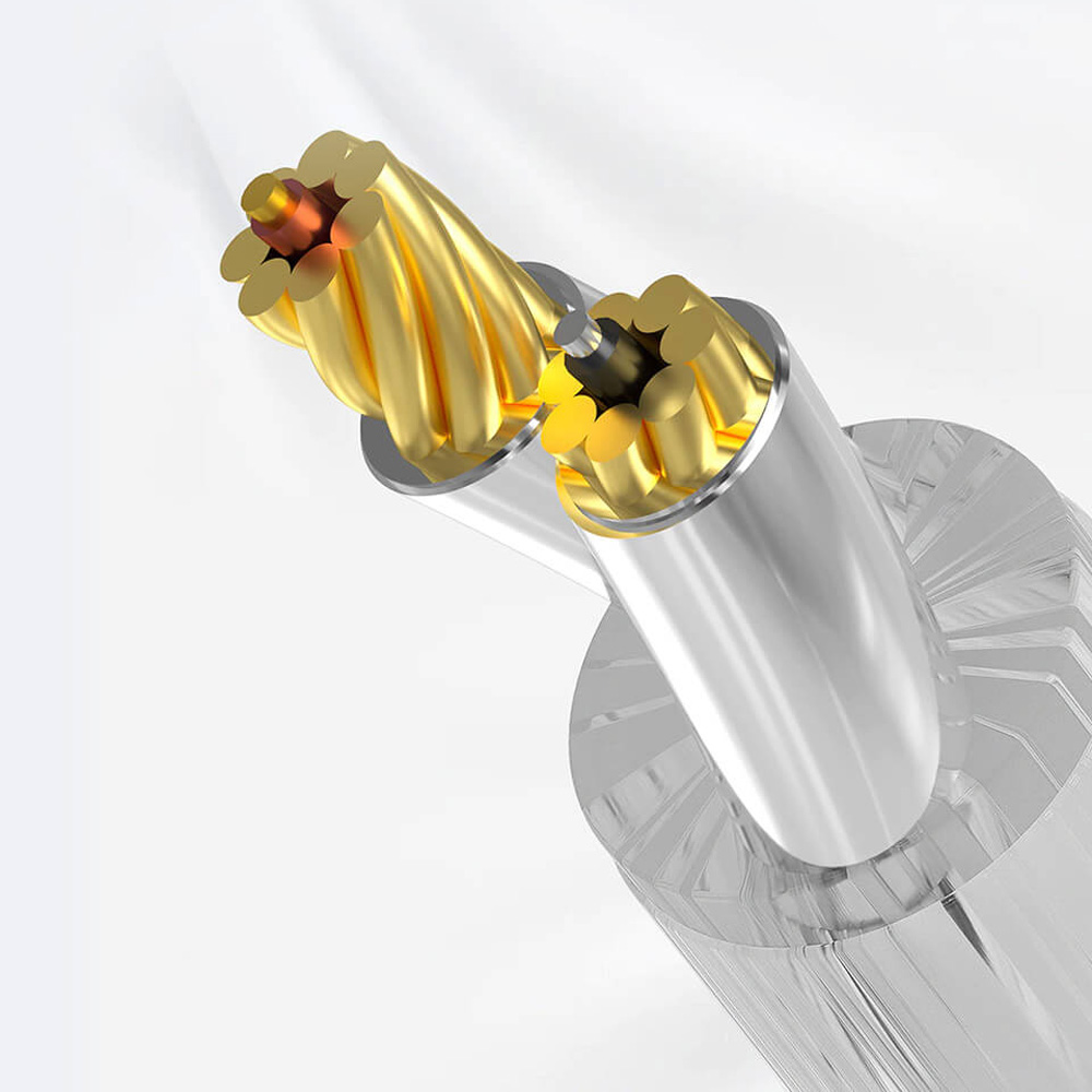 Трехдиапазонное подключение обладает плавным и детальным звуком. Стандартная трехполосная конструкция точно рассчитывает частотное подключение каждого сбалансированного арматурного излучателя.
