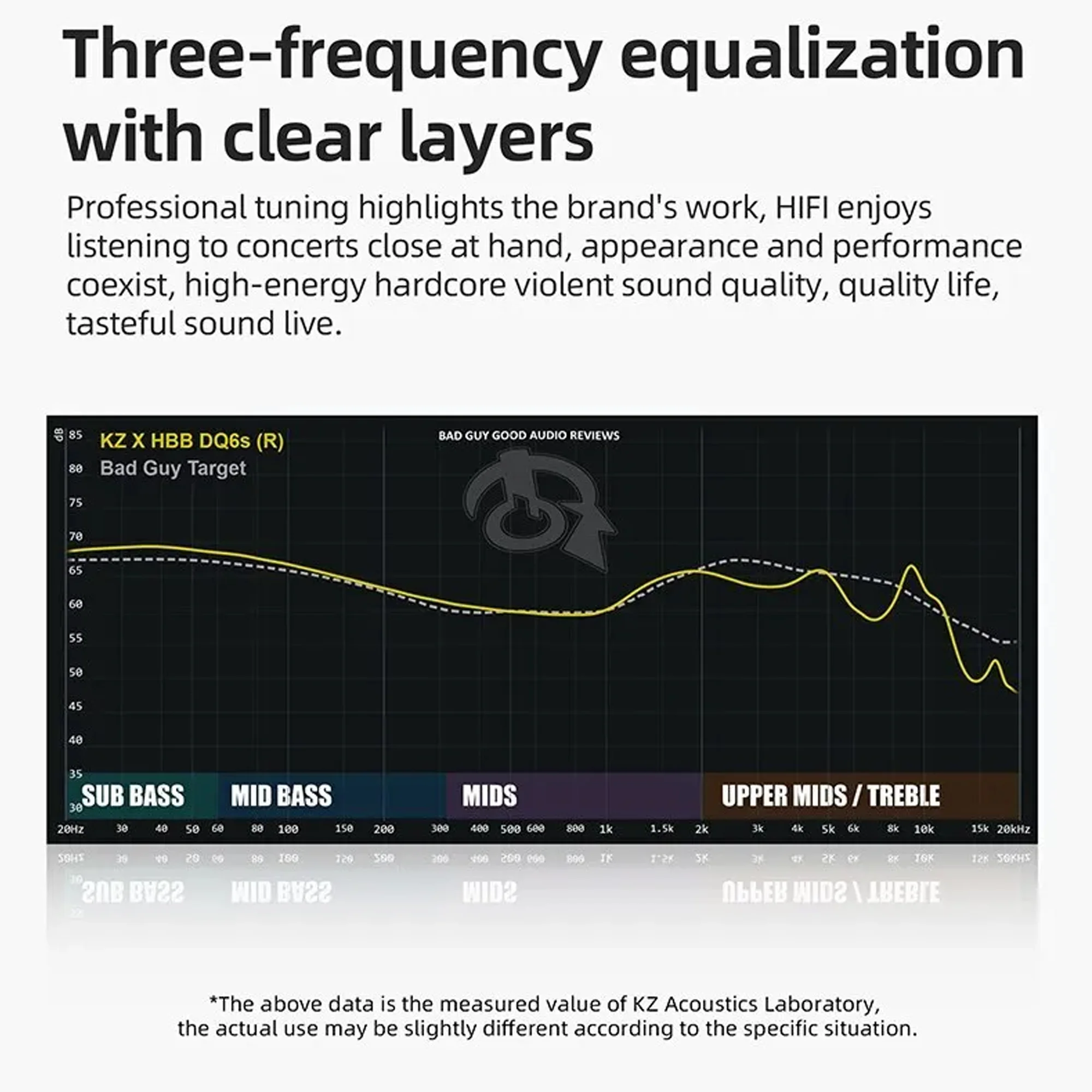 Совместный проект KZ x HBB-KZ DQ6S KZ DQ6S - это первый продукт, который команда KZ brand разработала в сотрудничестве с одним из легендарных блогеров в мире аудиофилов “Bad Guy, Good Audio Reviews” (также известным как "Гавайский плохой парень"), и он готов предложить любителям музыки высококачественные, но бюджетные наушники. Оснащенный 3 динамическими динамиками в стиле массива, KZ DQ6S может работать с различными участками частотного диапазона, обеспечивая в целом сильные басы, плавные средние частоты и чистые высокие частоты.