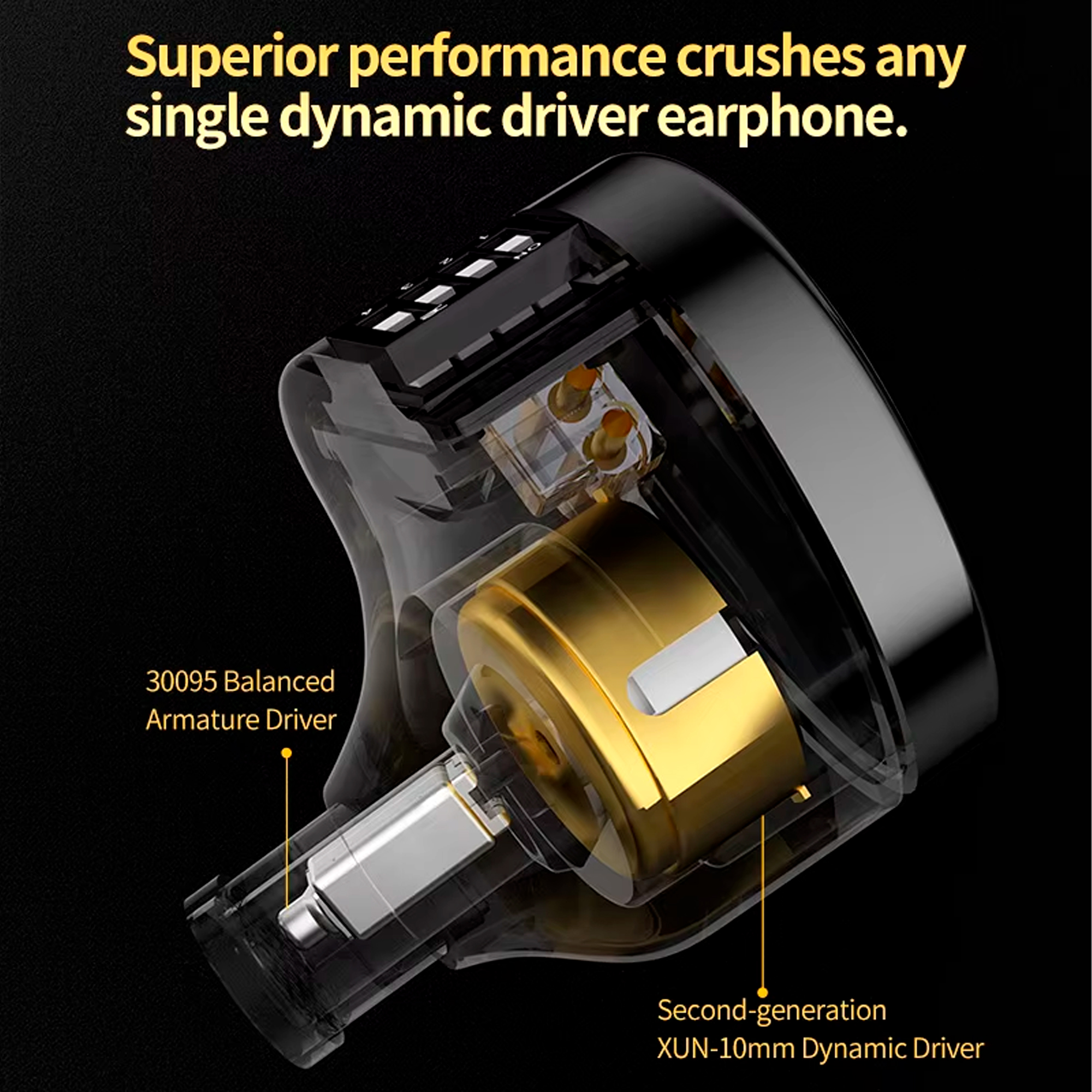 Специалисты KZ переработали новый арматурный излучатель 30095, чтобы сделать его более подходящим для стандартов Hi-Fi. Излучатели 30095 изначально предназначались для слуховых аппаратов, а не для наушников Hi-Fi. Было непросто добиться качества звука, соответствующего стандартам Hi-Fi в отношении частотной характеристики и общей производительности. Поэтому в прошлом году KZ начали проект по переработке этого сбалансированного арматурного излучателя, оптимизировав его структуру и изменив пик высокочастотного резонанса для повышения чувствительности в диапазоне 10 кГц, что сделало его более подходящим для наушников Hi-Fi.