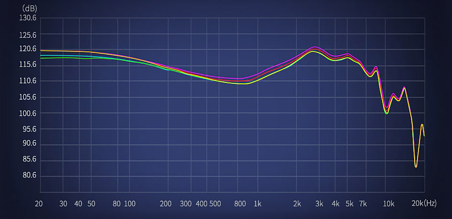 Благодаря поддержке четырехслойной катушки производительность одного драйвера превосходит производительность других обычных составных установок с двумя драйверами. Падение производительности между 20 Гц и 100 Гц составляет менее 3 дБ, что обеспечивает превосходную глубину низких частот. Падение между 20 Гц и 200 Гц составляет около 8 дБ, что делает низкочастотный отклик четким, эластичным и невероятно впечатляющим.