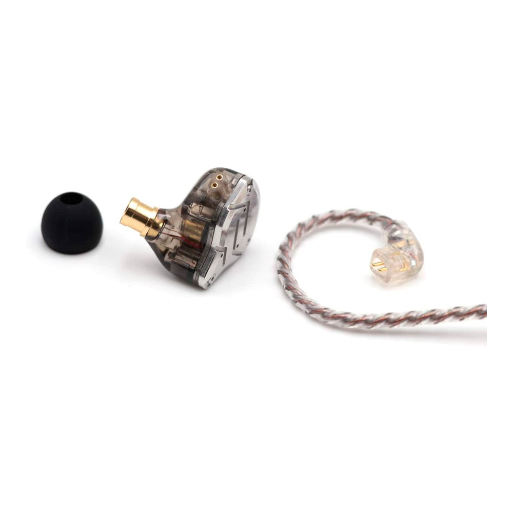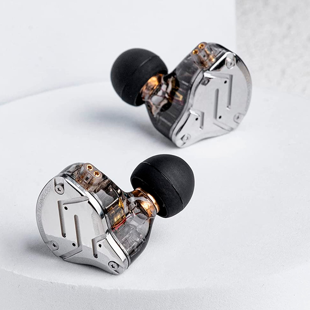 Визуальное исполнение KZ ZS10 Pro подчеркивает их надежность и профессиональную направленность. Лицевая панель изготовлена из нержавеющей стали марки 304, которая не только эффектно выглядит, но и служит защитой для внутренней электроники. Основная часть корпуса выполнена из прозрачной смолы, позволяющей рассмотреть сложную систему кроссоверов и расположение драйверов. Эргономика модели продумана таким образом, чтобы наушники плотно прилегали к ушной раковине, минимизируя давление при длительном прослушивании и обеспечивая качественную пассивную изоляцию от внешних шумов.