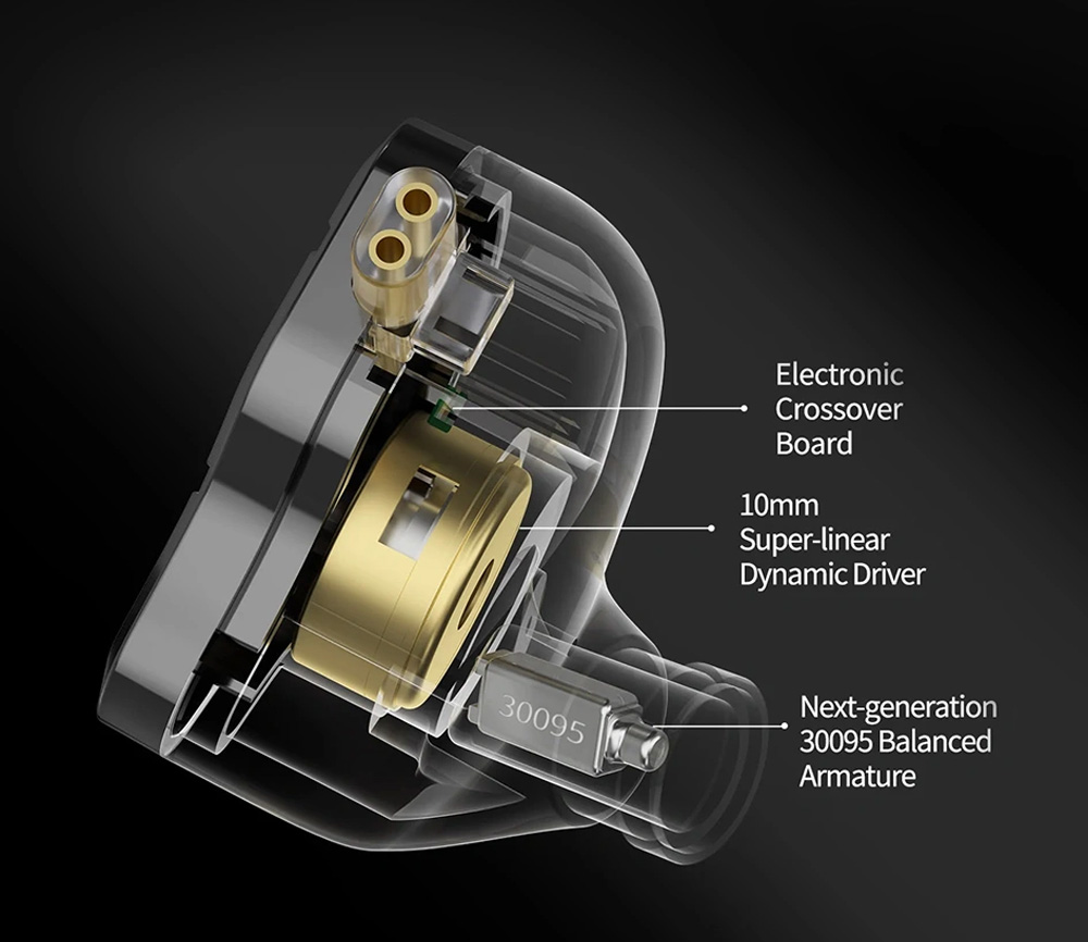 В новой версии излучателя улучшены высокие частоты и снижены искажения. Улучшив структуру драйвера сбалансированной арматуры, KZ успешно снизили уровень искажений. Оптимизированный драйвер сбалансированной арматуры позволяет вам воспринимать более четкие высокочастотные детали при прослушивании музыки.