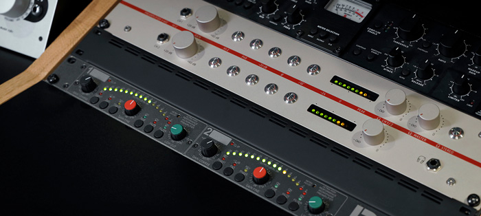 Шестнадцатисегментная полулогарифмическая светодиодная гистограмма отображает уровень выходного сигнала в диапазоне 36 дБ. Чувствительность дисплея можно отрегулировать в соответствии с требованиями пользователя с помощью триммеров, расположенных на передней панели. Светодиодный индикатор клиппинга начинает мигать при уровнях выше +20 дБн, предупреждая об искажениях. Симметричные входы и выходы расположены на задней панели, на каждый канал приходится два выхода.