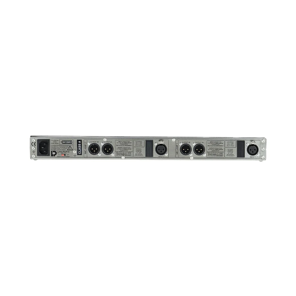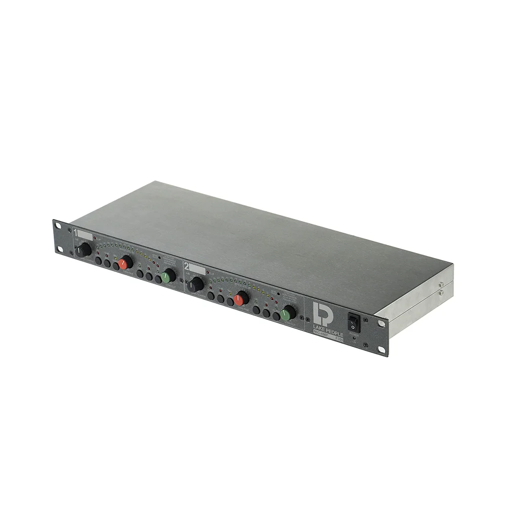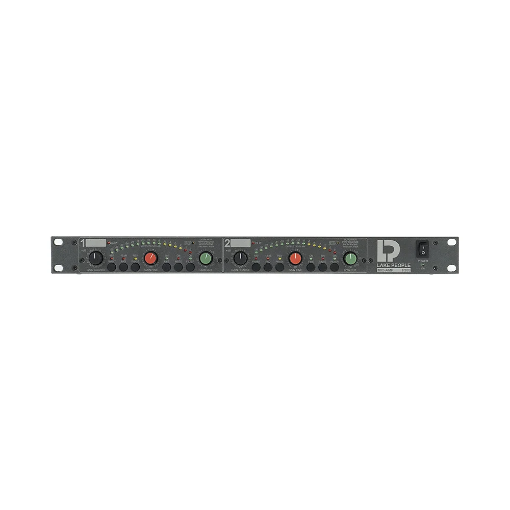 Усиление регулируется двумя ручками на канал: двенадцатиступенчатый поворотный переключатель устанавливает грубое усиление с шагом 6 дБ от 0 до +66 дБ. Потенциометр с центральным фиксатором позволяет выполнять точную настройку в диапазоне +/- 5 дБ. НЧ-фильтр можно настраивать индивидуально от 10 до 250 Гц.