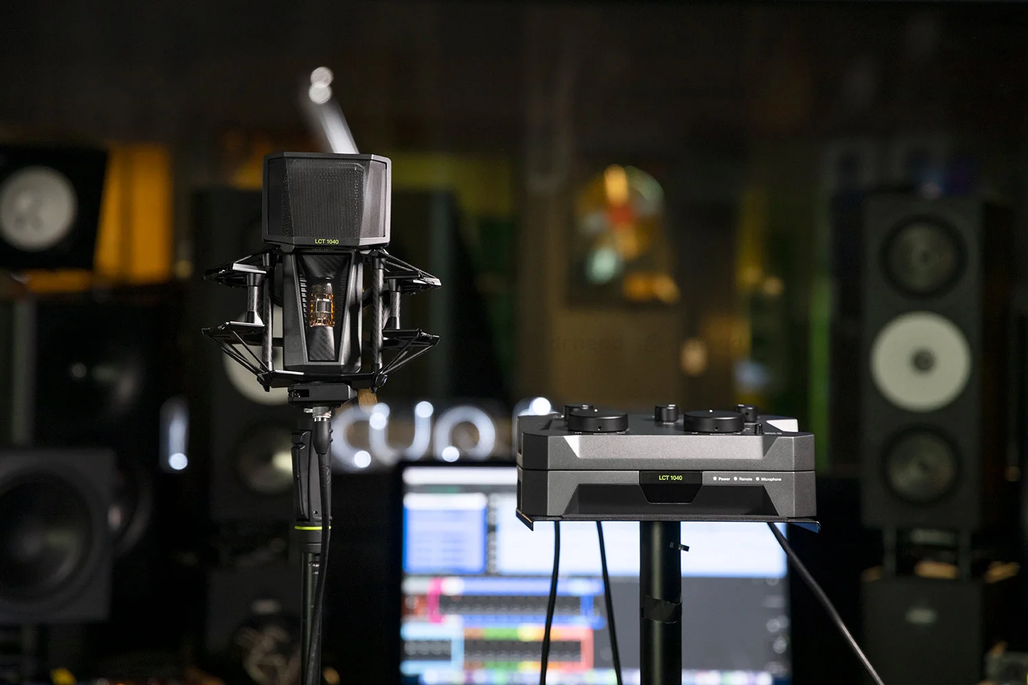 В ламповом предусилителе LCT 1040 используется лампа E88CC / 6DJ8 от JJ Electronics. Система LCT 1040 имеет пульт ДУ, который позволяет управлять настройками удаленно. Вы сможете установить микрофон в комнате для записи, отсоединить пульт управления от модуля блока питания, подключить их друг к другу при помощи стандартного кабеля 3-pin XLR и настраивать звук микрофона, находясь в контрольной комнате. LCT 1040 оснащается конденсаторным чувствительным элементом с 1” позолоченной диафрагмой. Диаграмму направленности микрофона можно гибко настраивать, используя соответствующий регулятор на пульте управления. Кроме этого, при помощи переключателя Default/Reverse можно выбирать, какая из сторон микрофона будет лицевой.