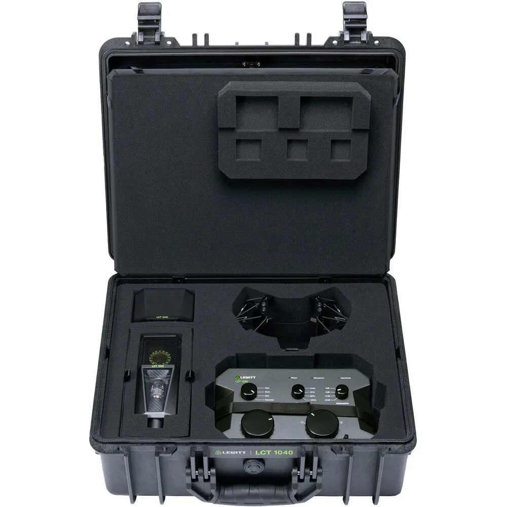 Микрофонная система LCT 1040 имеет два выхода XLR с разъемами Neutrik. На выход Mix приходит смешанный сигнал с лампового и транзисторного предусилителей, а на выход FET – сигнал только с транзисторного предусилителя. В комплекте поставляется подвес, двуслойный поп-фильтр с магнитным креплением, транспортировочный кейс и 11-pin XLR кабель.