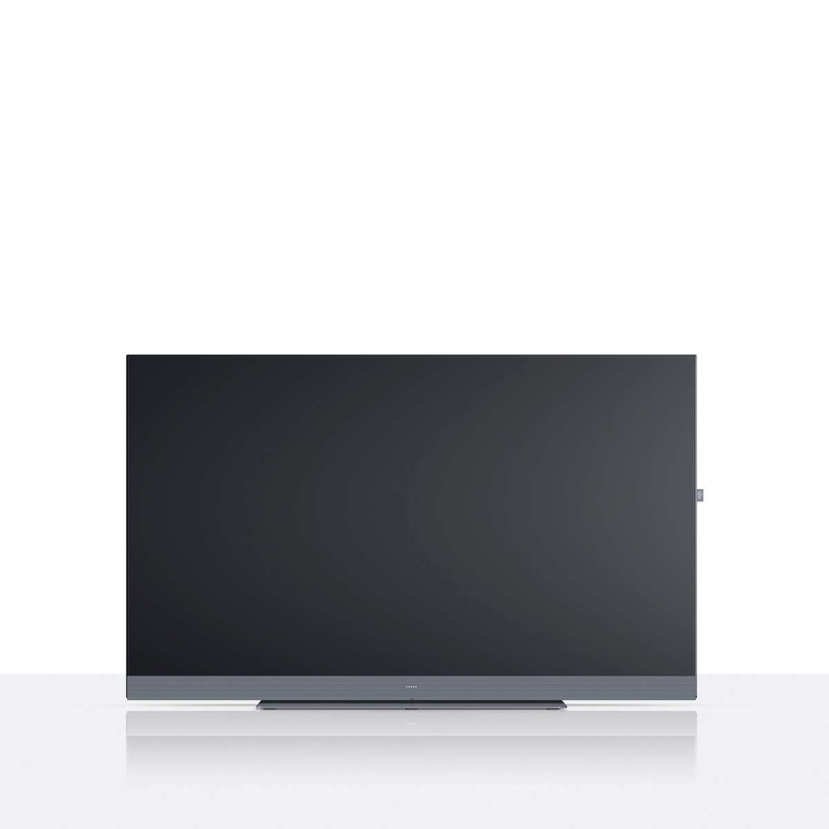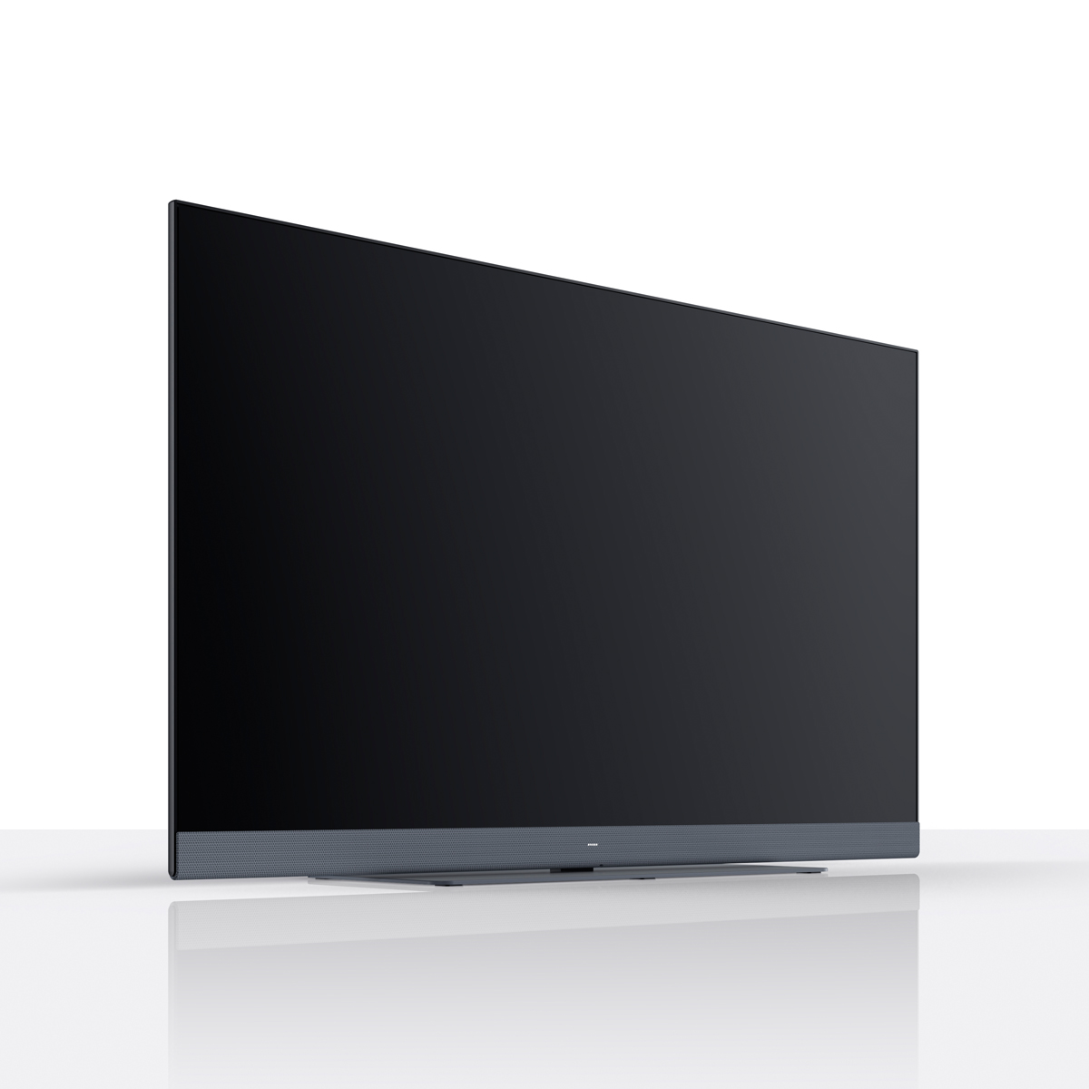 Телевизоры Loewe WE. SEE прекрасны с любой стороны — яркая звуковая панель, фирменный шильдик с логотипом WE, яркая задняя панель, настольная подставка, в которой прячутся кабели.