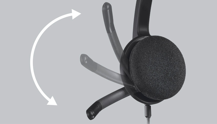 Этот микрофон с правосторонним креплением можно поворачивать для улучшения передачи голоса и подавления фонового шума. Небольшой штатив убирается внутрь оголовья, чтобы он не мешал, когда микрофон не используется.