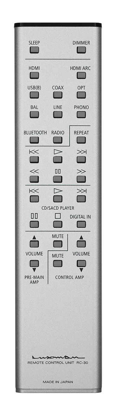 «LUXMAN Stream» — это бесплатное приложение для управления, предназначенное исключительно для NT-07, которое позволяет управлять множеством функций на сложном экране. Для каждого смартфона и планшета предусмотрен выделенный интерфейс, позволяющий выбирать источники звука, создавать списки воспроизведения и настраивать различные параметры устройства. В комплект также входит алюминиевый инфракрасный пульт дистанционного управления, который позволяет выполнять основные операции без запуска приложения. Вы также можете управлять воспроизведением проигрывателей дисков LUXMAN и громкостью встроенного усилителя. Он также оснащен терминалами ввода/вывода управления, которые связывают операции дистанционного управления между совместимыми устройствами.