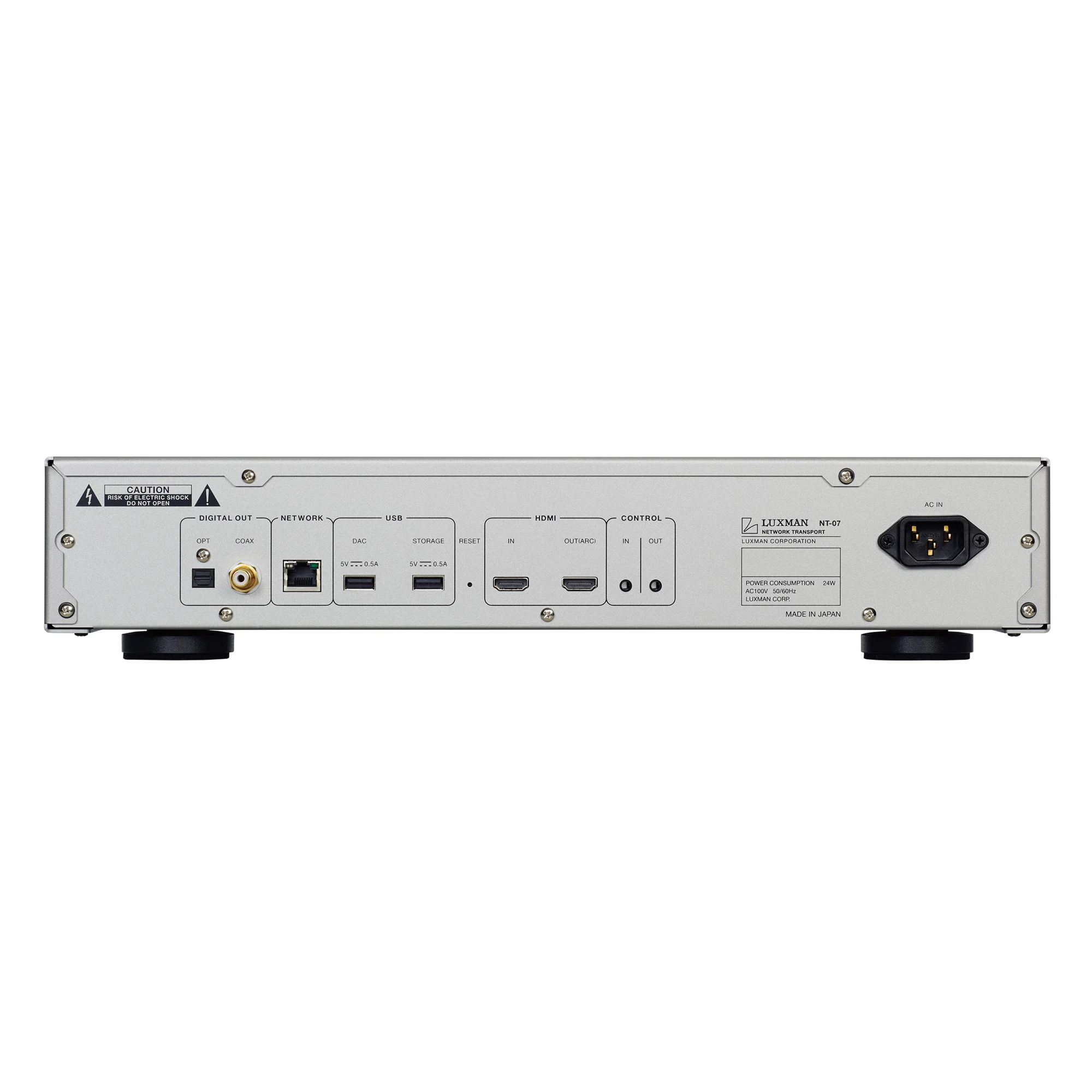 Luxman NT-07 - сетевой аудиоплеер. Luxman NT-07 поддерживает воспроизведение контента с сетевых серверов UPnP, а также обеспечивает доступ к популярным стриминговым сервисам, таким как Qobuz, TIDAL, Spotify и другим. Модель способна скалировать материал PCM и DSD, а также декодировать формат MQA. Управление компонентом осуществляется по сети посредством фирменного приложения для мобильных гаджетов LUXMAN Stream. Кроме того, планируется поддержка экосистемы Roon в будущих обновлениях системного ПО.