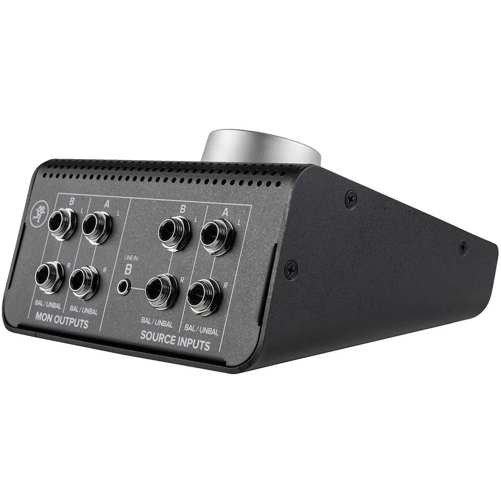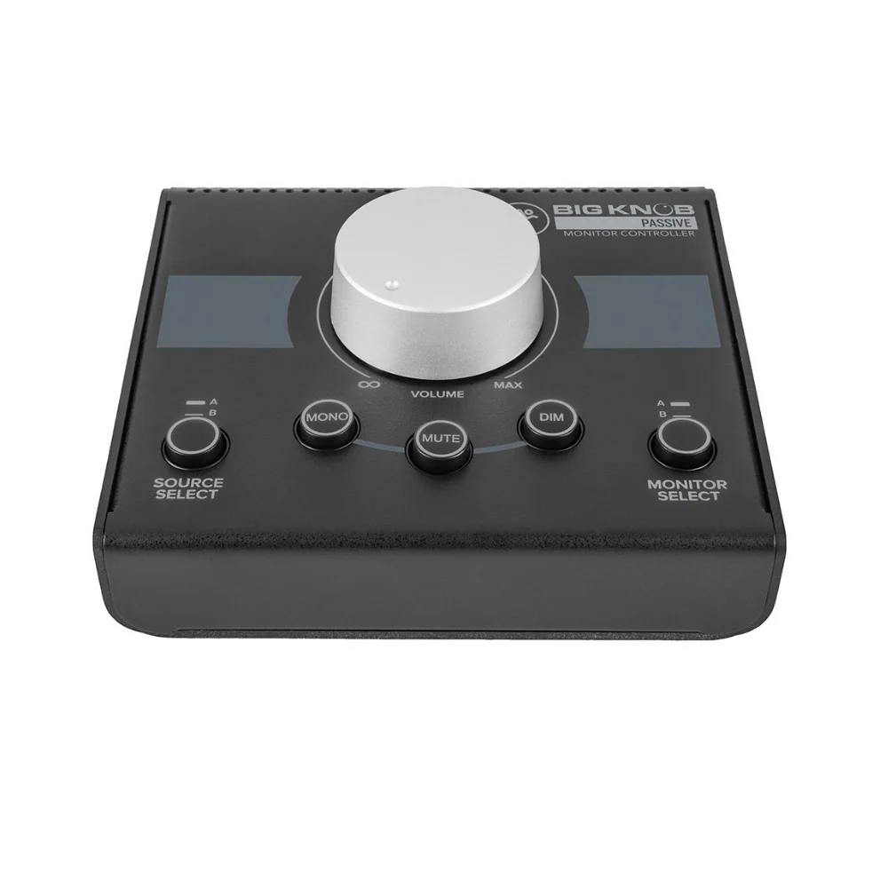 Mackie Big Knob Passive – это пассивный настольный контроллер для мониторов. С помощью данного устройства можно легко переключать между собой или использовать вместе 2 пары мониторов, 2 источника звука и контролировать громкость большим и удобным регулятором. Mackie Big Knob Passive имеет пассивную схему, не требует источника питания и за счет этого не вносит никаких изменений в аудиосигнал. На передней панели располагаются функции Mono, Mute и Dim, которые отвечают за преобразование стереосигнала в моно, полное отключение (-100 дБ) и приглушение источника звука (-20 дБ) соответственно. На задней панели присутствуют 4 входа 1/4'' TS для источника звука, 4 выхода 1/4'' TS на мониторы и вход для внешнего источника звука на разъеме 3.5 мм miniJack. Входы и выходы 1/4'' TS поддерживают балансные и небалансные сигналы. Mackie Big Knob Passive выполнен в очень прочном стальном корпусе с прорезиненными ножками. Устройство является идеальным решением для обеспечения полного контроля двух пар мониторов. Обладая малыми габаритами, удобством и простотой управления, прибор прекрасно впишется в рабочее пространство.