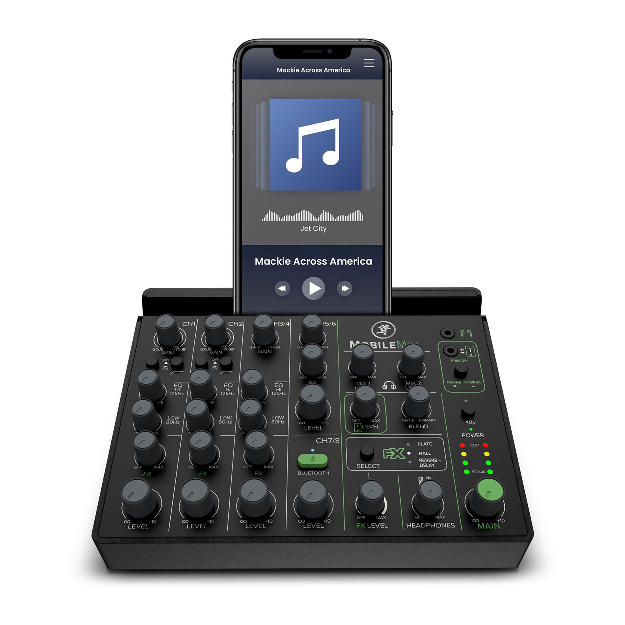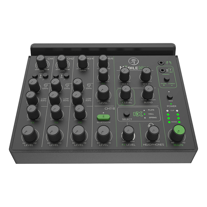 Комбинированные микрофонные/линейные входы XLR-1/4" с фантомным питанием позволяют работать с любым оборудованием - от высококачественных конденсаторных микрофонов до DI-инструментов, а также имеют стереофонический линейный входной канал и переменный FX-посыл. MobileMix не только отличается портативным и низкопрофильным дизайном, но и имеет док-станцию для смарт-устройств, таких как телефоны и планшеты, что позволяет объединить мобильные настройки в одну удобную систему.