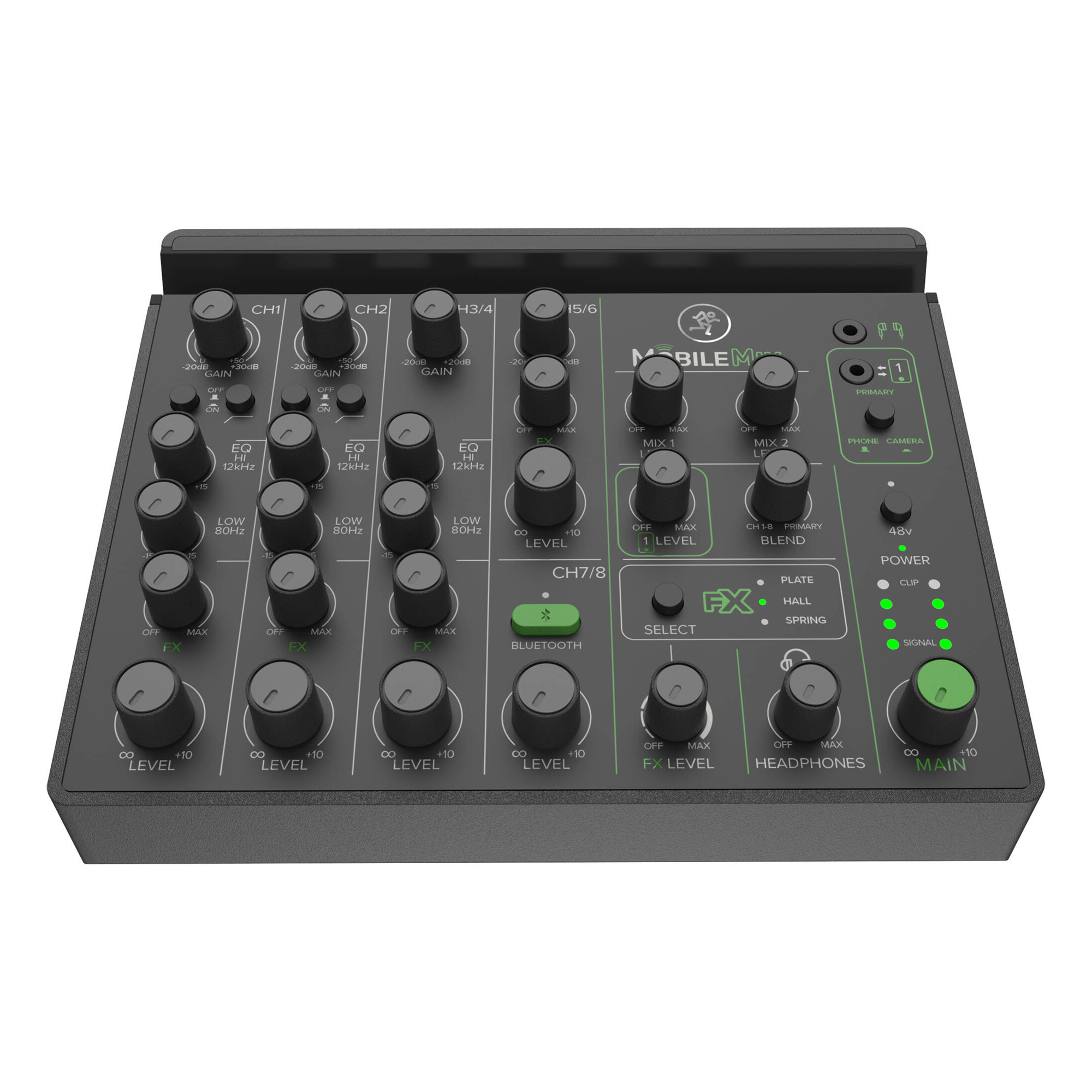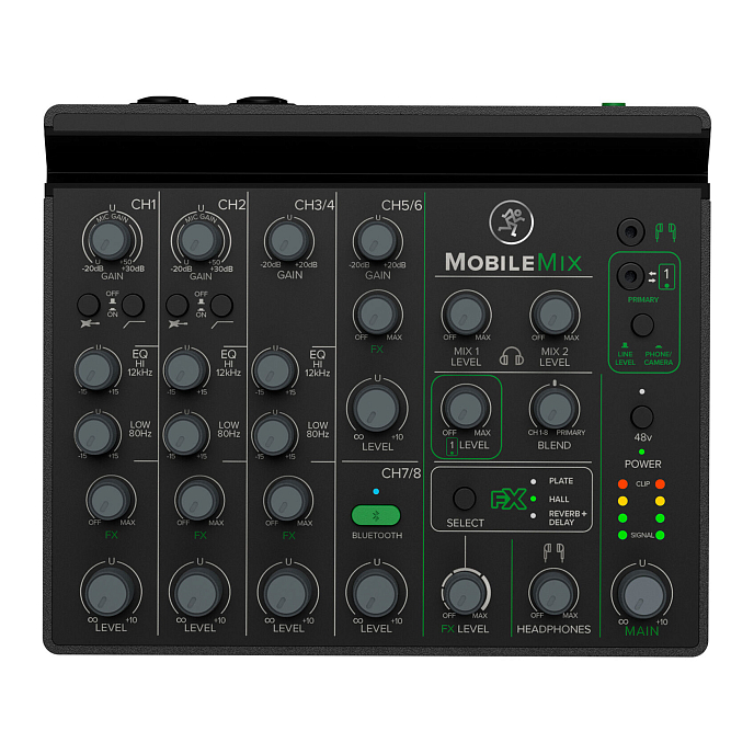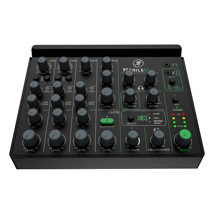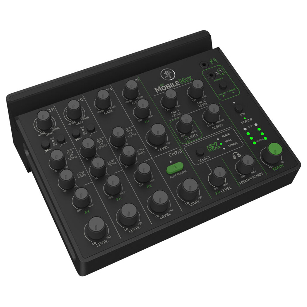 MobileMix сочетает в себе легендарное качество сборки и превосходный звук, благодаря которым Mackie доверяют во всем мире. Два полнофункциональных канала микрофонного предусилителя с комбинированными разъемами XLR и 1/4 дюйма, переключатели импеданса Hi-Z для электрогитар и других пассивных инструментов, фильтры низких частот и фантомное питанием 48 В для конденсаторных микрофонов.