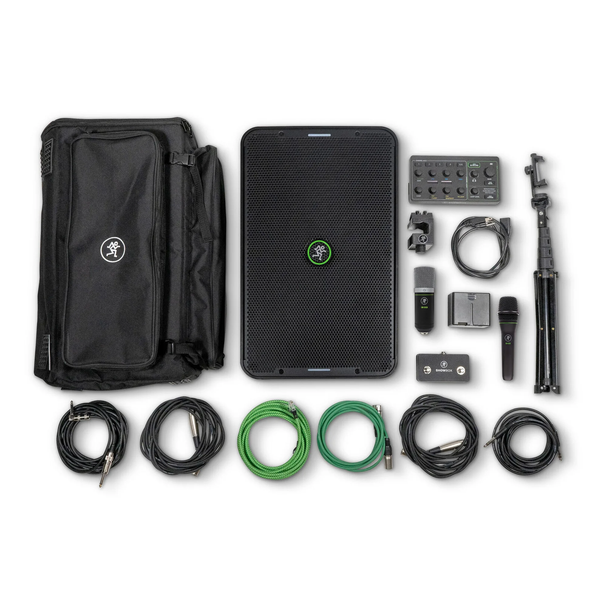 Mackie ShowBox обеспечивает до 12 часов мощного звучания вживую благодаря усилителю мощностью 400 Вт, настраиваемым драйверам и входящему в комплект аккумулятору. ShowBox с 6 входными каналами для микрофонов и инструментов - это комплексное решение для создания портативного живого звука для певцов, гитаристов, клавишников и многих других.