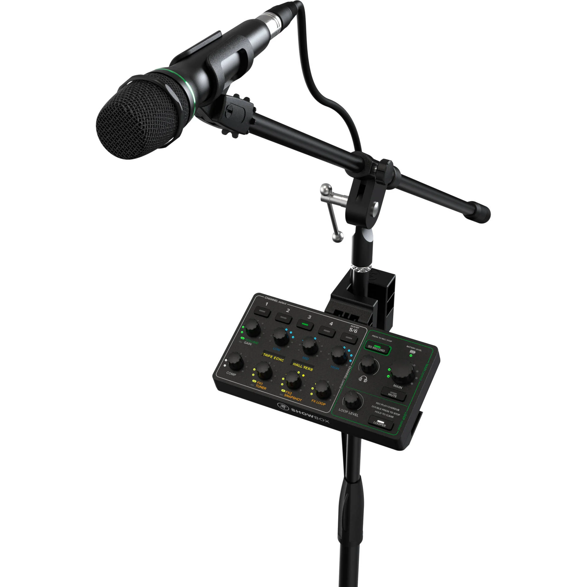 С помощью функции breakaway mix control у вас всегда будет все под рукой, включая уровни для микрофонов и инструментов, эффекты, формирование тембра, моментальные снимки, лупер, тюнер и многое другое. Контроллер крепится к подставке для микрофона и выдвигается в демонстрационный бокс для хранения.