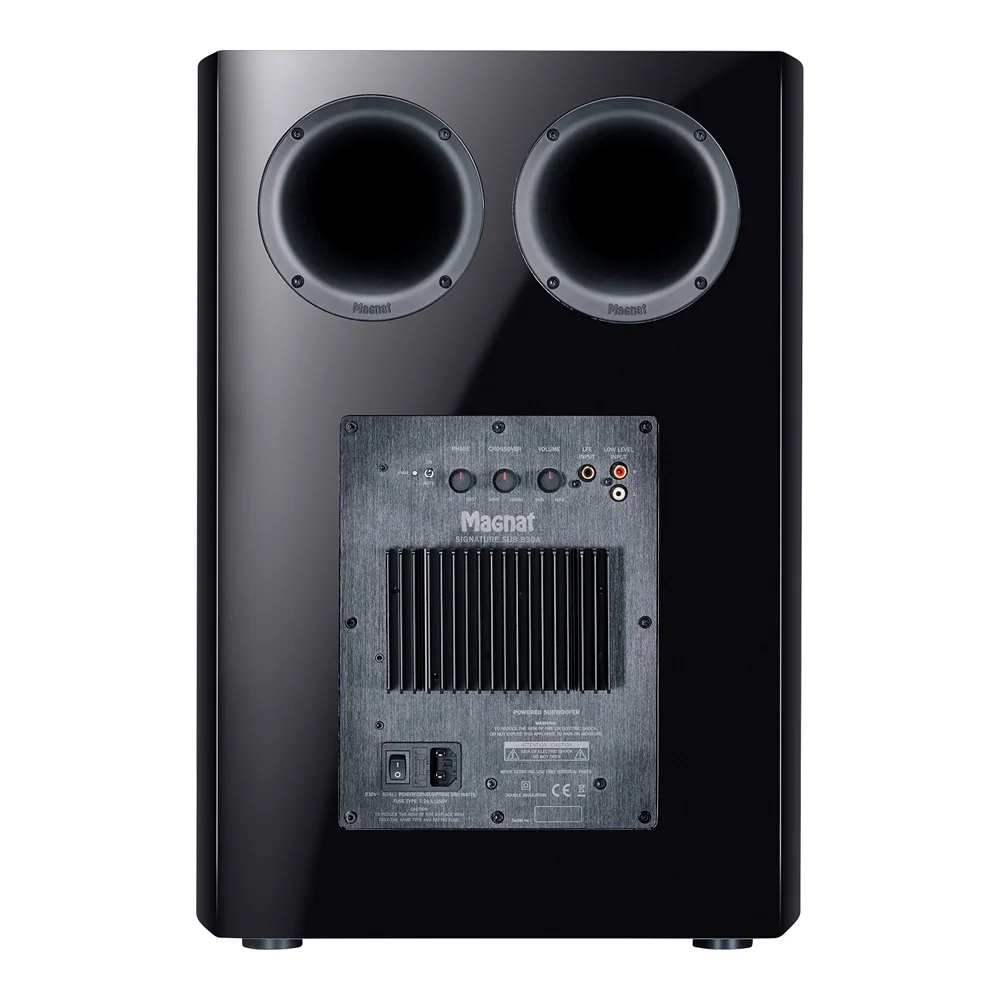 Шасси в формате XXL и цифровой усилитель с пиковой мощностью 400 Вт позволяют активному сабвуферу Magnat Signature Sub 930A воспроизводить очень низкие частоты вплоть до 18 Гц. Массивный корпус Magnat Signature Sub 930A сработан из толстых листов MDF и стянут изнутри рёбрами жёсткости, при этом толщина фронтальной панели достигает 45 мм. 12-дюймовый драйвер с бумажным диффузором смонтирован на передней плоскости и излучает оптимально рассеивающую басовую энергию. Для повышения отдачи здесь использована схема с парой задних фазоинверторов сравнительно небольшого диаметра. Это решение позволило значительно уменьшить турбулентные воздушные шумы, возникающие на высокой громкости. Параметры усилительной части таковы — до 440 Вт в пике при схеме мягкого ограничения хода диффузора, эффективно устраняющей посторонние призвуки. Сабвуфер наделён обширным набором коммутационных разъёмов, в числе которых линейные и высокоуровневые терминалы, а также гнездо LFE для работы в кинотеатральном комплексе.