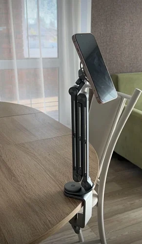 Держатель подходит для смартфонов, планшетов, камер или других гаджетов, позволяя фиксировать их на удобной высоте и под оптимальным углом. Одной из ключевых особенностей Magssory Arm является его гибкость, которую обеспечивают шесть регулируемых шарниров.