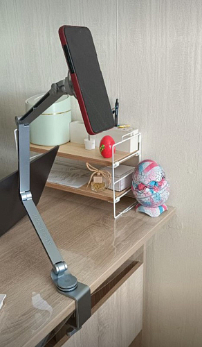 Благодаря этому можно настроить положение устройства по вертикали, горизонтали и под любым углом и использовать держатель для работы, учёбы, видеозвонков, стримов или просмотра контента.