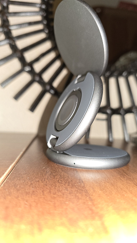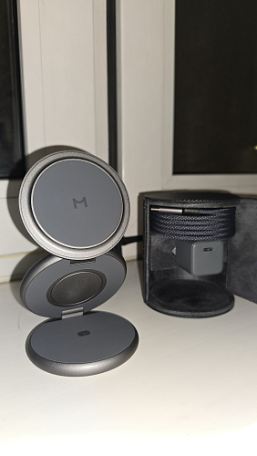 Зарядная станция имеет надёжное магнитное крепление класса N52, совместима с MagSafe. Корпус выполнен из алюминиевого сплава, имеет складную конструкцию и регулируемый угол наклона для надёжной фиксации устройства.