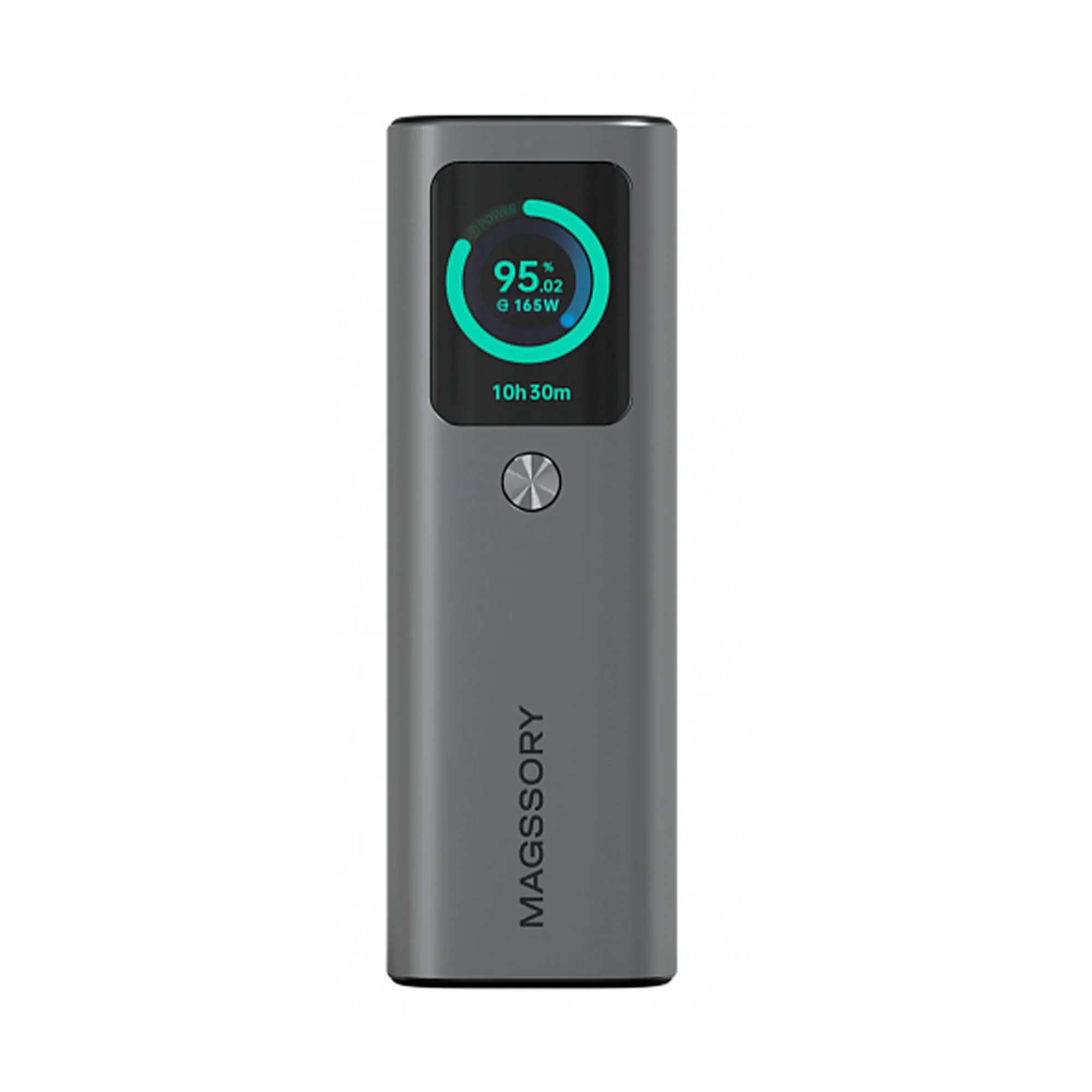 Внешний аккумулятор Magssory Gear 20000 mAh 165W идеальное решение для зарядки ноутбуков и других гаджетов. Благодаря выходной мощности до 165 Вт, аккумулятор легко справляется с зарядкой даже самых требовательных ноутбуков. LCD-дисплей отображает все ключевые параметры: уровень заряда, текущую мощность, время работы, температуру устройства и статистику использования.
