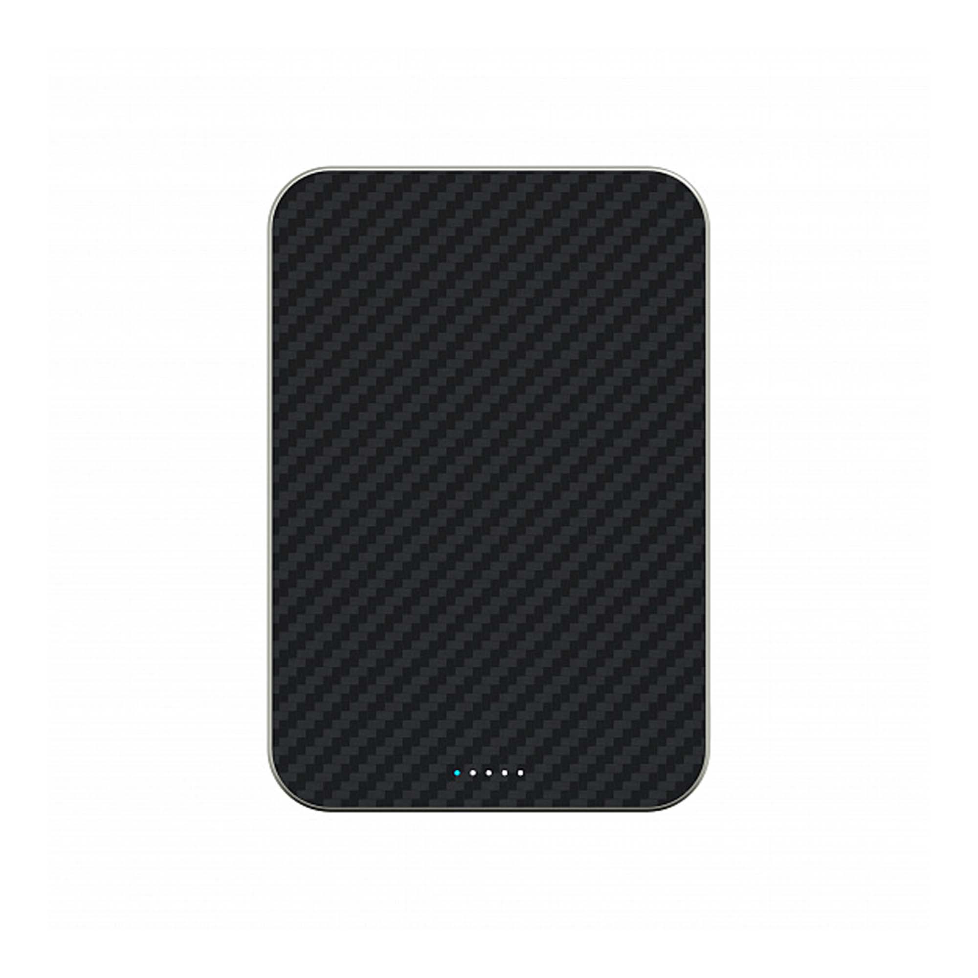 Для зарядки используется беспроводная зарядка MagSafe мощностью до 15 Вт., а также порт USB-C с поддержкой быстрой зарядки. Корпус устройства выполнен из алюминия, крышка изготовлена из арамидного волокна и встроенными неодимовыми магнитами класса N52, что обеспечивает надежное крепление устройств.