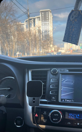 Magssory Prime Magsafe — держатель для вашего автомобиля со встроенной беспроводной зарядкой. Телефон крепится на магнитах, которые выдерживают до 2.5 кг нагрузки. Даже на при резком торможении устройство останется на месте и не соскользнем куда-нибудь под сиденья, отвлекая вас от вождения. Аксессуар поддерживает быструю зарядку (15 Вт) Qi, PD, QC и совместим со всеми устройствами с MagSafe.