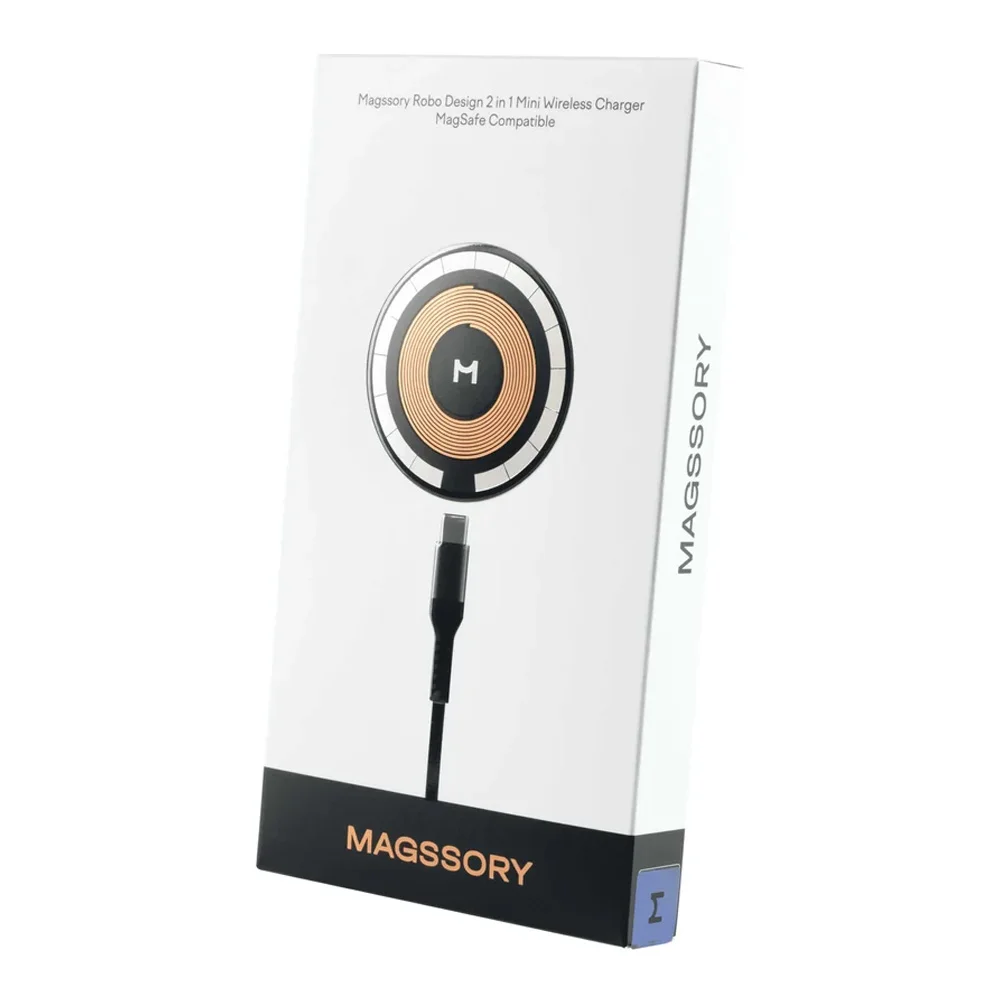 Беспроводное зарядное устройство Magssory Robo Design (WCH005) совместимо с мобильными девайсами, поддерживающими функцию MagSafe, стандарты Qi, PD, QC. Корпус выполнен из алюминия и закаленного стекла, устойчив к механическим повреждениям.