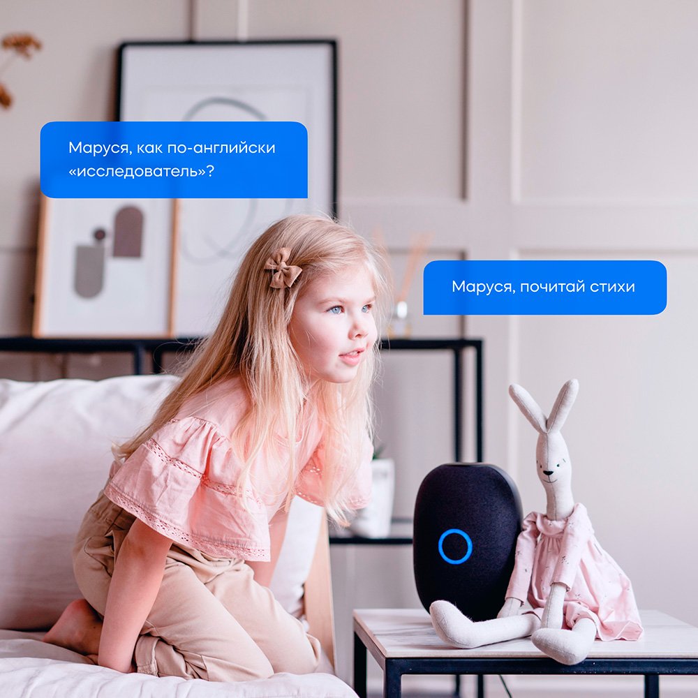 Ребёнок сможет сам включить любимую сказку, поиграть или просто поболтать с Марусей, пока вы готовите ужин.