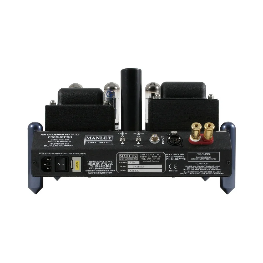 Сконструированные ведущим инженером Manley Labs Митчем Марголисом усилители-моноблоки Snapper отличается полностью дифференциальной схемой, включая входной (12AT7) и предоконечный (7044) каскады. Благодаря наличию входных разъемов XLR возможна реализация полностью балансного подключения, если предусилитель также обладает балансными выходами.