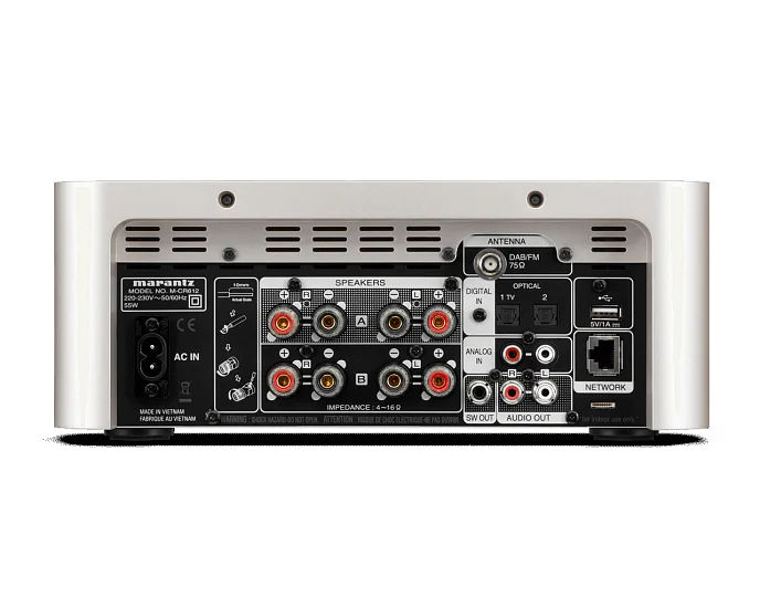 Marantz M-CR612 Melody X оснащен высококлассным CD-приводом, оптимизированным для воспроизведения дисков CD-Audio. Также в составе аппарата очень качественный FM-тюнер с функцией автонастройки и возможностью запоминания большого числа станций. Также Marantz M-CR612 Melody X оснащен двумя аналоговыми и двумя цифровыми входами для внешних источников. Имеется в устройстве и USB-вход для портативных носителей, при этом поддерживается воспроизведение как Lossless, так и файлов High Resolution.