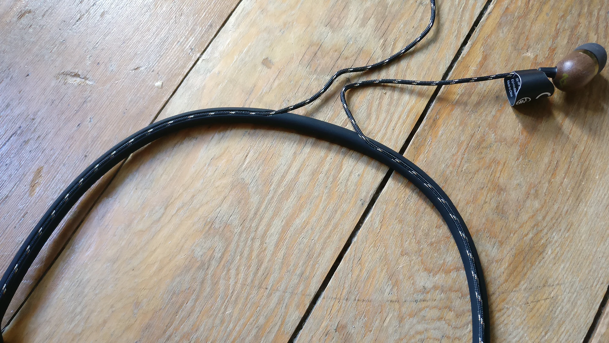 Сами наушники отделаны деревом: по мнению компании это улучшило звучание. Кабели упакованы в тканевую оплетку, а на концах обода, также оформленных деревом, расположены кнопки управления воспроизведением и микрофон.