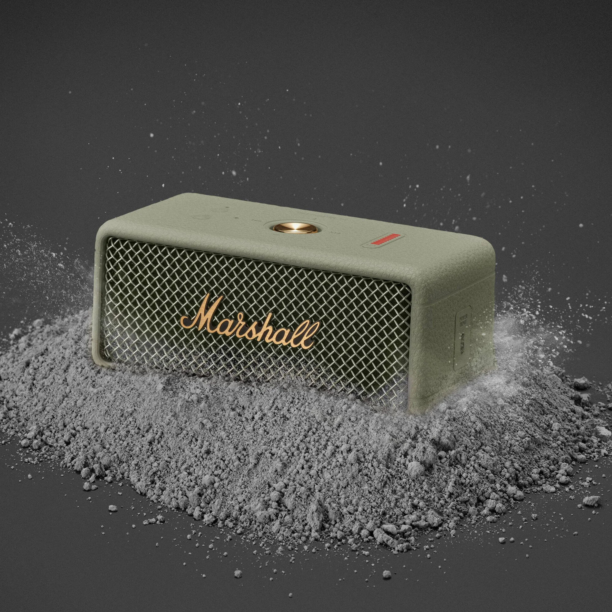 Marshall Emberton III верен культовому дизайну бренда, но при этом использует более экологичный подход. Прочная конструкция колонки на 50% состоит из переработанного пластика, полученного из использованной электроники, бутылок от воды, автомобильных плафонов, и на 100% не содержит ПВХ.