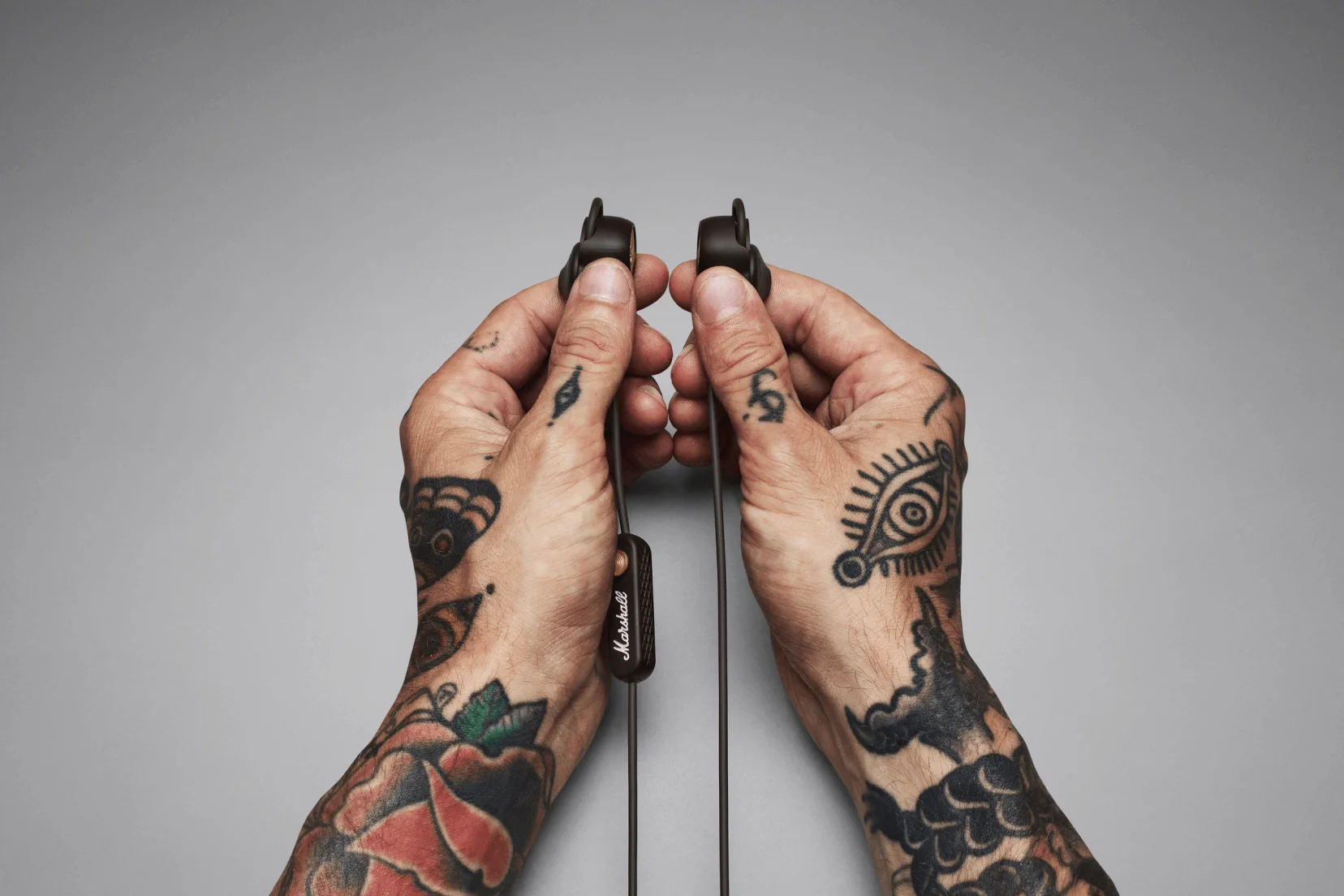 Minor II Bluetooth имеют инновационную систему заушного крепления с регулируемым контуром для оптимальной и эргономичной подгонки под любое ухо, что обеспечивает надежную и комфортную фиксацию.