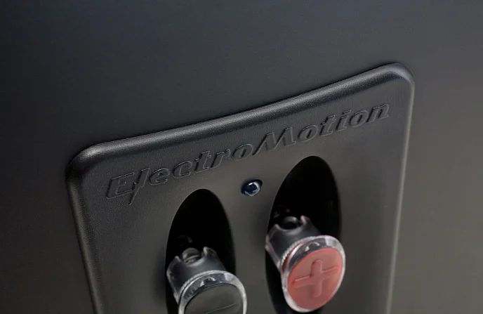 Для безукоризненного согласования сигнала ВЧ- и СЧ-излучателей электростатической панели с излучением НЧ-драйвера громкоговоритель ElectroMotion ESL оснащается фильтром, выполненным по фирменной топологии Vojtko™ со звуковыми катушками без сердечников, индукторами из ламинированной стали с низким сопротивлением к постоянному току, конденсаторами с диэлектриком из полиэстеровой пленки, соединенными последовательно, а также параллельно соединенными электролитическими конденсаторами с низким коэффициентом потерь. Исключительно для громкоговорителя EM-ESL инженерами Martin Logan был разработан прецизионный НЧ-драйвер с 8-дюймовым идеально сбалансированным диффузором аудиофильского уровня, выполненным из армированного целлюлозного волокна (фактически — бумаги высокой жесткости). В этом драйвере идеально оптимизированы характеристики подвеса и магнитный поток — с тем, чтобы повысить как отдачу на басах, так и четкость воспроизведения средних частот. Специально рассчитанный жесткий, но легкий диффузор позволяет избавиться от изгиба диафрагмы при работе и минимизировать время отклика. В итоге достигается поразительно низкий уровень искажений, близкий к тому, которым может похвастаться получившая множество наград конструкция электростатической панели Martin Logan.