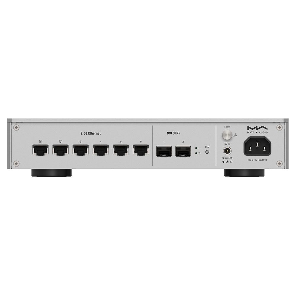 Два порта SFP/SFP+ со скоростью соединения до 10 Гбит/с позволяют Matrix Audio SS-1 устанавливать оптоволоконные или RJ45-модули в соответствии с вашими потребностями. Это позволяет одновременно подключать как сетевые устройства восходящего потока, так и цифровые аудиоплееры через порты SFP, достигая полной электрической изоляции между сетевыми устройствами и аудиооборудованием через оптоволоконные кабели. Это предотвращает передачу высокочастотного шума или помех от сетевых устройств через заземляющий провод в аудиооборудование.