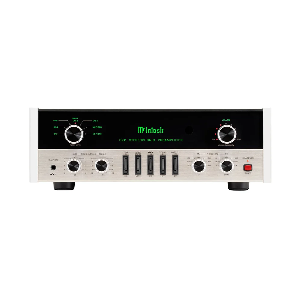 Mcintosh C22 MK V - представляет собой версию вакуумного лампового предусилителя. C22 - MK V - является прямой заменой C70 Limited Edition, который ознаменовал 70-ю годовщину 2019 года. С22 MK V обладает всеми характеристиками знаменитого C70, но с символичсеким названием C22 и фирменным дизайном передней панели из стекла и алюминия.