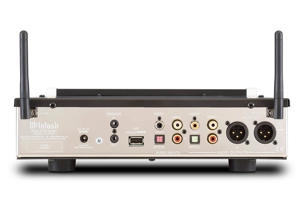 Сетевой проигрыватель McIntosh MB50 способен расширить функционал современной аудио/видеосистемы, добавив ей функцию стримингового воспроизведения музыки. Аппарат выполнен в классическом для техники этой компании дизайне, имеет стальное шасси и классическую стеклянную переднюю панель. В то же время габариты McIntosh MB50 вдвое меньше, чем у обычных Hi-Fi и AV-компонентов McIntosh, что упрощает его размещение вместе с уже установленным оборудованием.