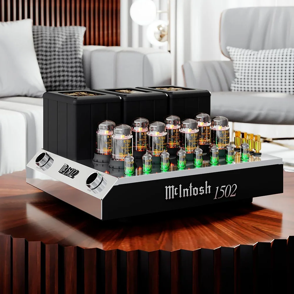 Компания McIntosh представляет ламповый стереоусилитель MC1502 мощностью 2 канала по 150 Вт. Модель повторяет схемотехнику модели MC2152, выпущенной в ограниченном числе экземпляров к 70-летию компании. MC1502 получил «более привычный для McIntosh дизайн». Как и MC2152, оконечник MC1502 является наследником классической модели MC275 — по сути, ее «удвоенным» вариантом. В оконечных каскадах каждого из двух каналов MC1502 установлены по четыре тетрода KT88, известных еще с середины 50-х годов прошлого века. Еще две пары двойных триодов — 12AX7A и 12AT7 — работают, в предварительных каскадах и цепях питания каждого канала.