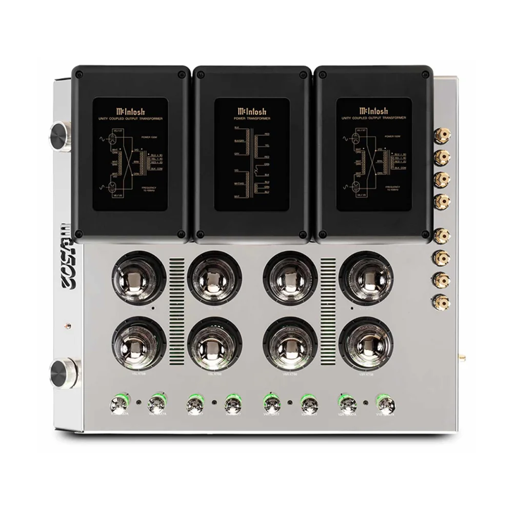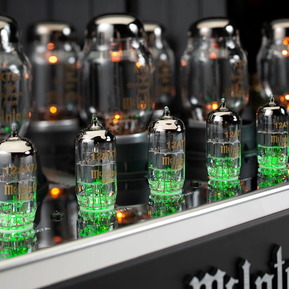 Все лампы защищены чернеными сетчатыми колпаками из нержавеющей стали. Мощные KT88 получили охлаждение Air-Pipe, продлевающее срок их службы. Керамические разъемы ламп с позолоченными контактами установлены на верхней панели усилителя. Выходной ток в MC1502 контролируется по технологии McIntosh Sentry Monitor. В случае его превышения усилитель отключается. Если этот режим был активирован, об этом проинформируют мигающие красные индикаторы.