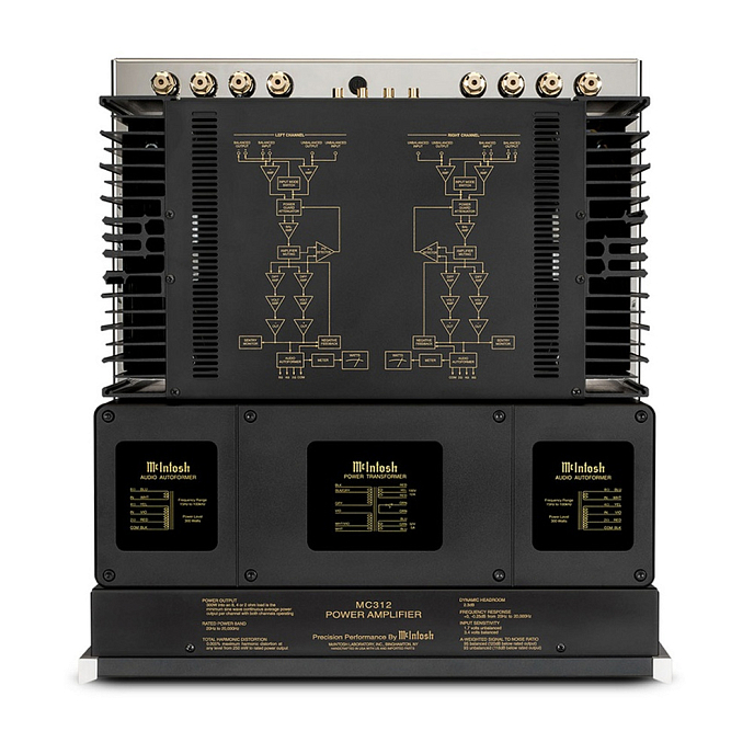 Другие обновления включают добавление новых радиаторов с монограммой Mc™. Также были модернизированы многочисленные компоненты схемы и внутренняя проводка. Добавлены дополнительные балансные и небалансные выходы для включения в системы с усилением по схеме би-ампинг. MC312 полон других эксклюзивных технологий McIntosh, включая: Power Guard®, Sentry Monitor ™, Power Control и запатентованные McIntosh клеммы для подключения колонок Solid Cinch ™. MC312 расположен на красивом полированном корпусе из нержавеющей стали и имеет классическую для McIntosh черную стеклянную переднюю панель, с подсветкой логотипа, ручек управления и пару знаменитых синих индикаторов мощности.