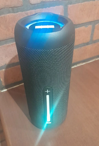 Колонка оснащена двумя динамиками, что обеспечивает широкий частотный диапазон и высокую детализацию звука. Басы глубокие и насыщенные, что делает звучание балансированным и приятным для слуха. Устройство способно заполнить звуком даже просторное помещение, не теряя при этом качества и чёткости.
