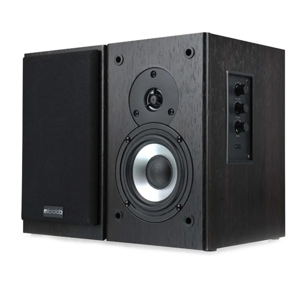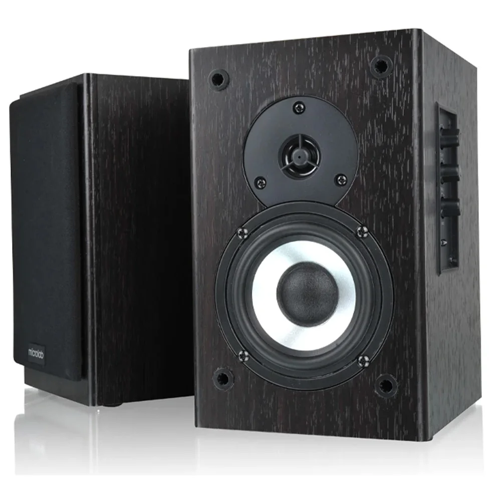 Компактная стереосистема типа 2.0 исполнена в классическом стиле. Корпус из МДФ не только приятен с эстетической точки зрения, но также снижает лишнюю вибрацию и сводит к минимуму присутствие посторонних шумов. Общий уровень искажения звуков составляет всего 0.3%.